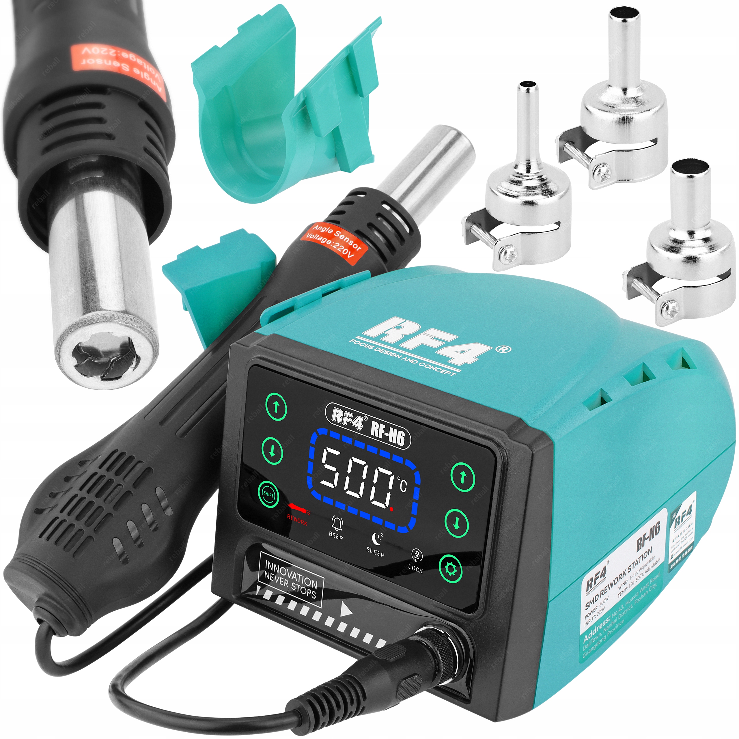 RELIFE RF-H6 to zaawansowana stacja hot-air o mocy 600W, zaprojektowana z myślą o: