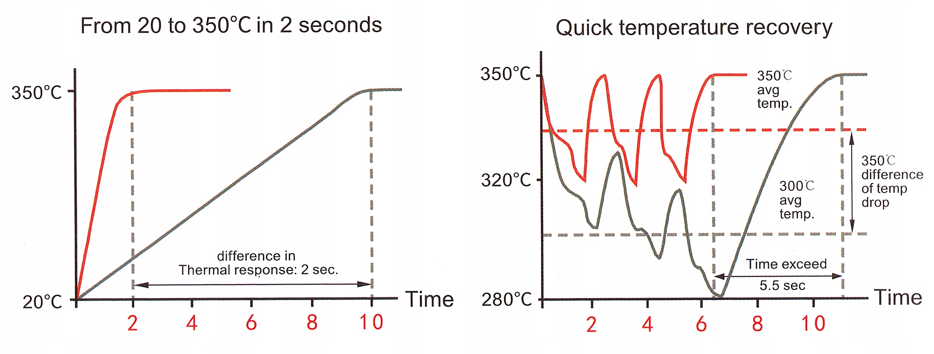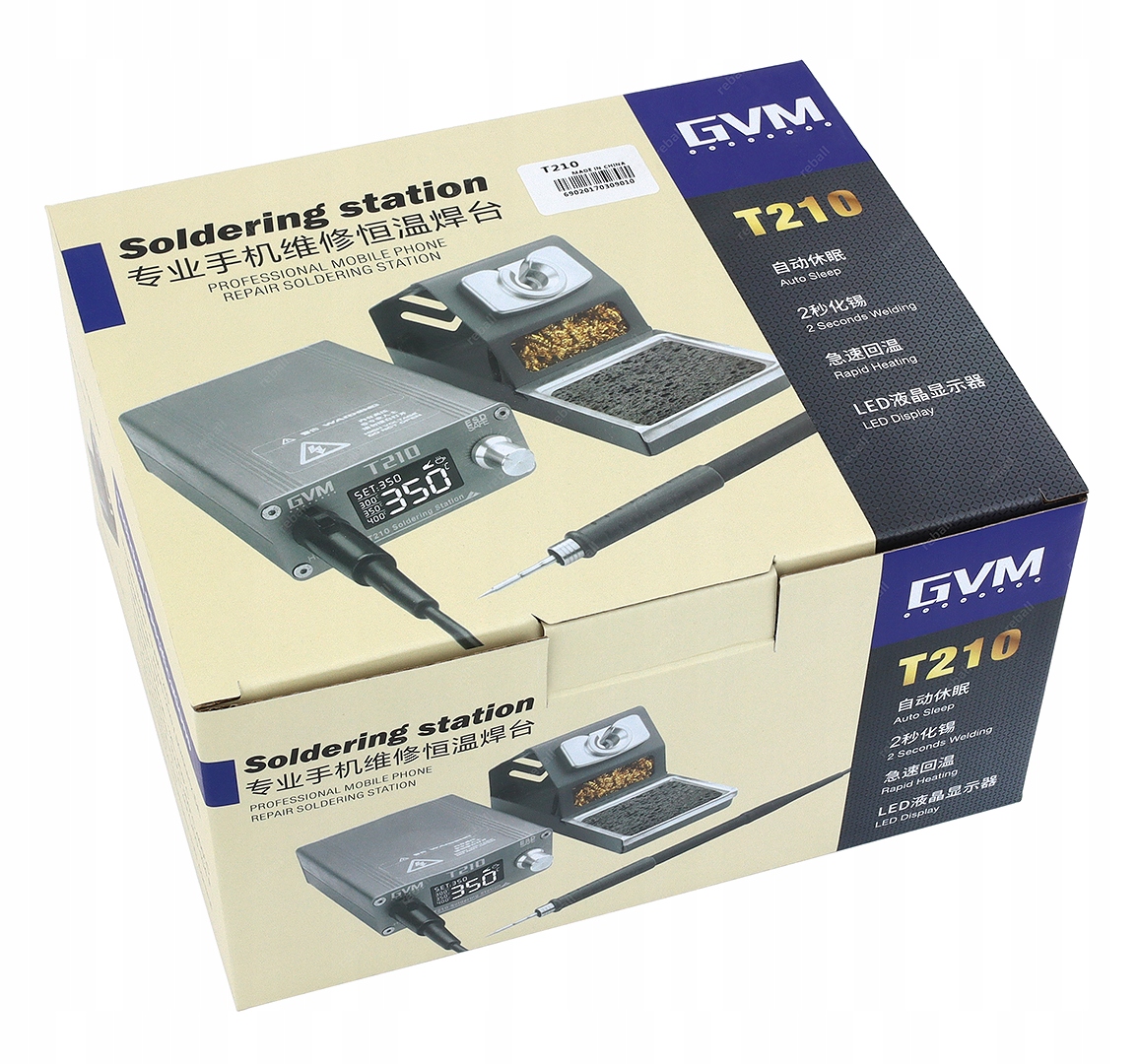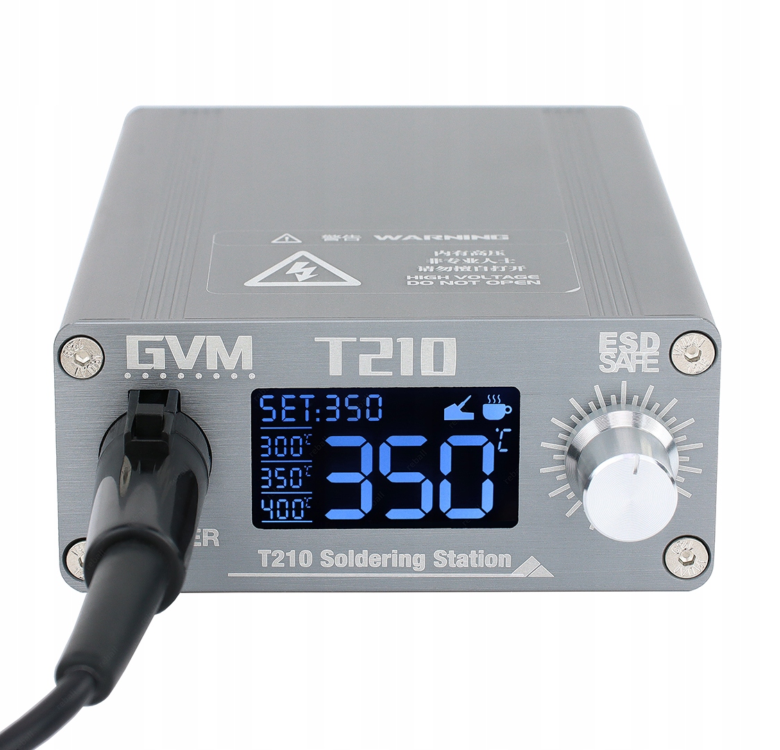 Stacja GVM T210 rozgrzewa groty C210 do 350C w 2 sekundy oraz bardzo szybko stabilizuje ich temperaturę.