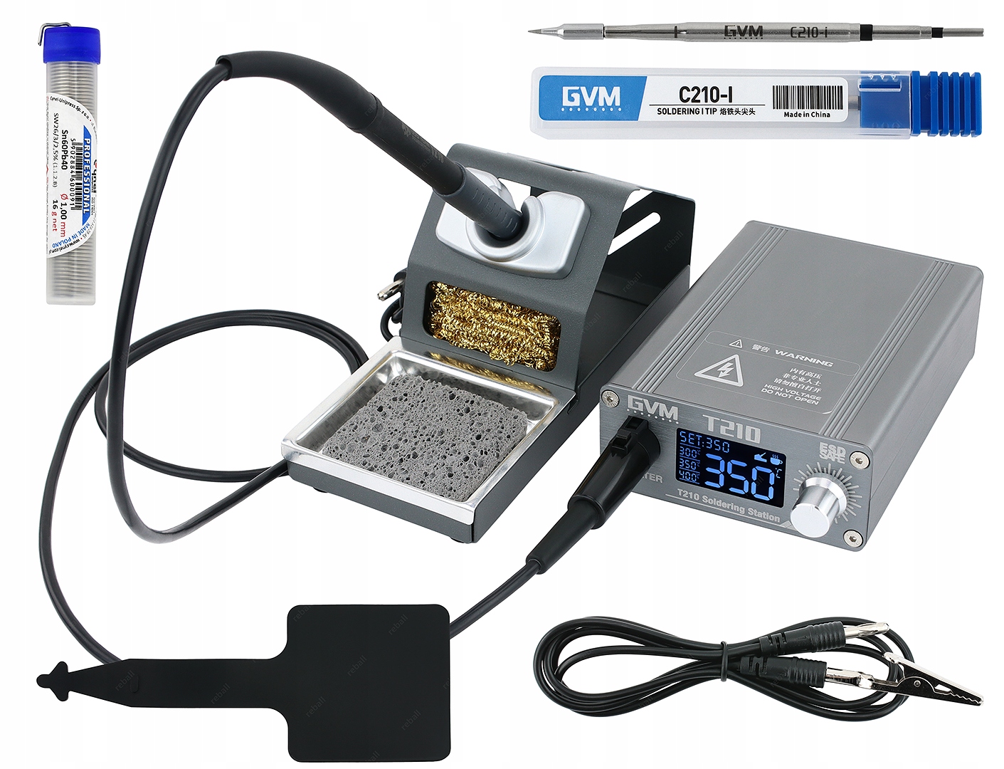 Stacja lutownicza GVM T210 o mocy aż 75W współpracuje z popularnymi C210 np. JBC oraz innymi z tej serii.