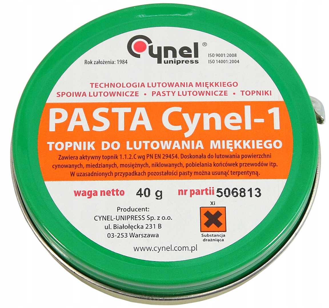 Pasta Cynel-1 to średnio aktywna pasta na bazie kalafonii z aktywatorami organicznymi.