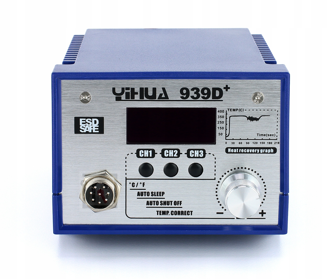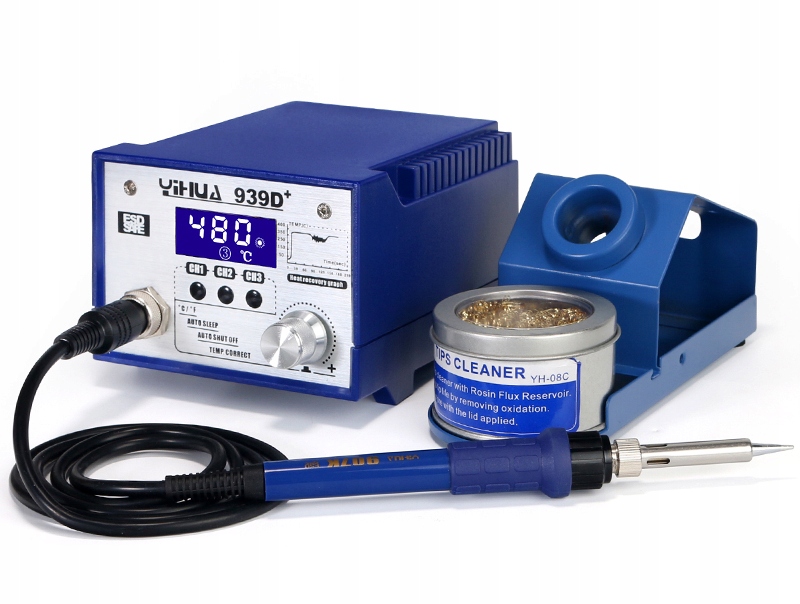 YIHUA 939D+ 75W to stacja lutownicza z płynną regulacją temperatury w zakresie od 200°C do 480°C oraz stabilizacją temperatury, wyświetlaczem LCD jak i trzema programowalnymi kanałami pracy.