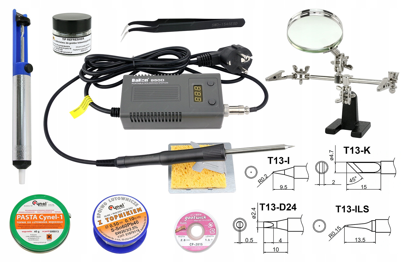 Cyfrowa stacja lutownicza BAKON 950D pozwala na pracę w zakresie temperatur 180-450°C przewidzianych dla lutowia ołowiowego i bezołowiowego. Bardzo dobrze kompensuje temperaturę nawet na największych grotach. Stacja posiada również możliwość szybkiej cyfrowej kalibracji temperatury.