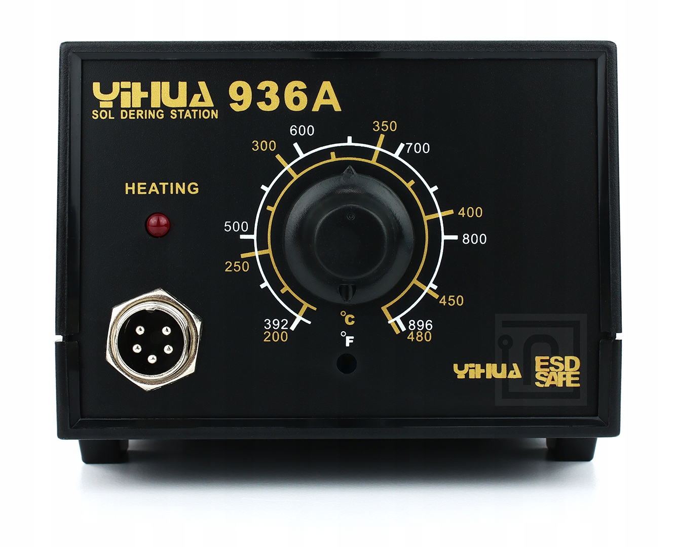 YiHUA 936A 75W to stacja lutownicza z płynną regulacją temperatury w zakresie od 200°C do 480°C oraz stabilizacją temperatury.
