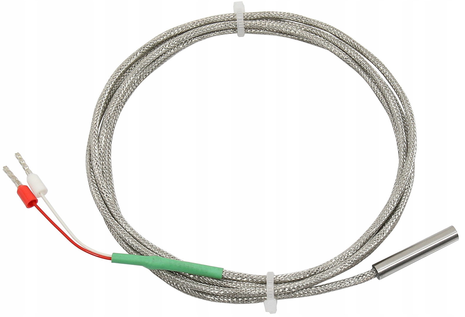 Czujnik temperatury PT100 umieszczony wewnątrz osłony 6x50mm ze stali nierdzewnej uszczelniony klejem na przewodzie przyłączeniowym.