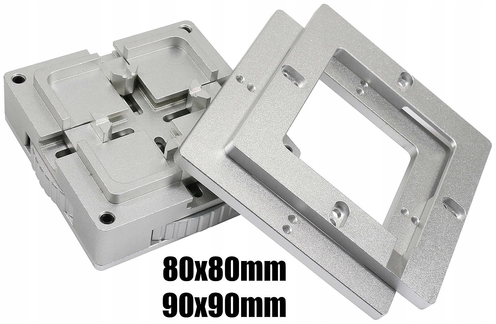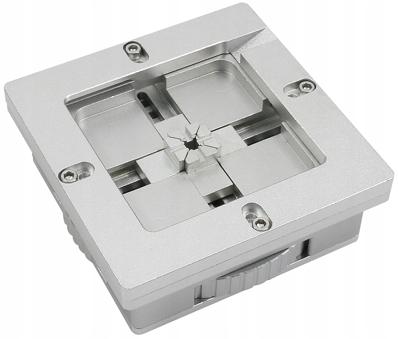 Jest to jedyny uchwyt z uniwersalną ramką pasującą do sit 80x80mm oraz 90x90mm. Dodatkowo ten model stolika posiada precyzyjną przekładnię ślimakową dzięki czemu mocowanie układów BGA jest szybkie i dokładne. Układ z każdej ze stron jest dokładnie dociskany przez uchwyty.