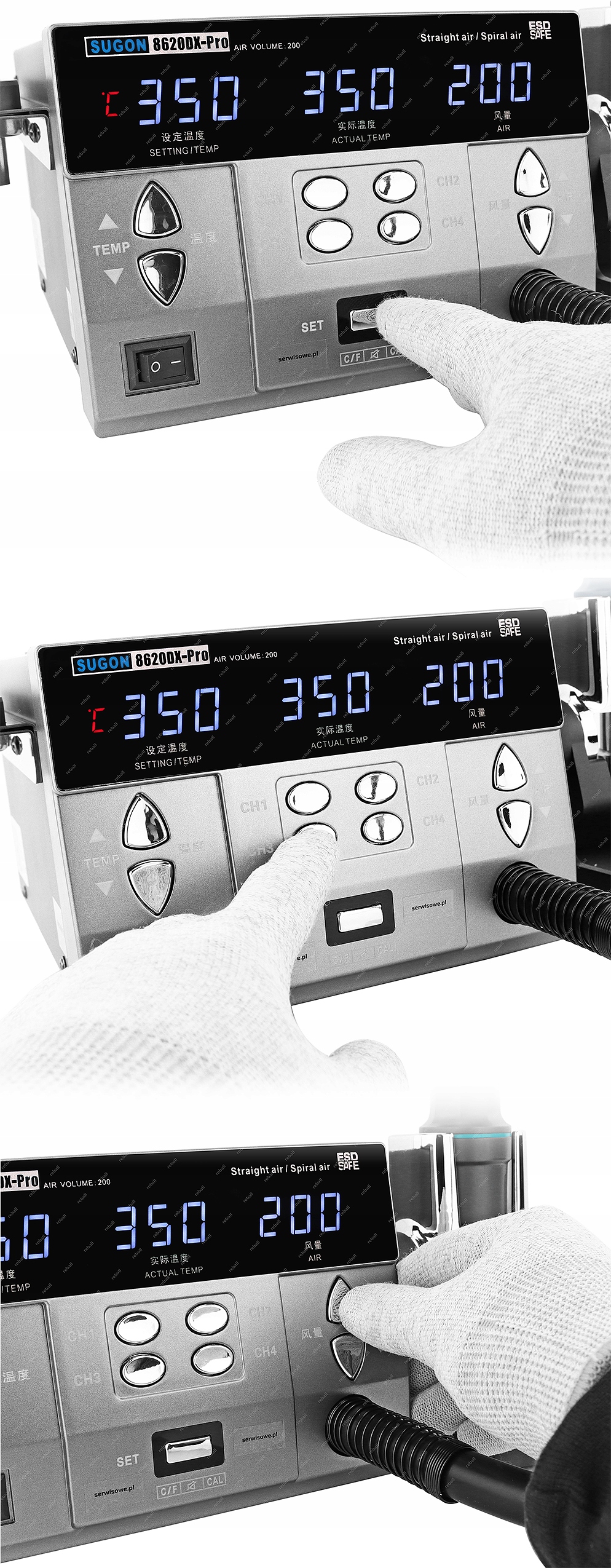 SUGON 8620DX 1300W to obecnie jedna z najnowocześniejszych i najmocniejszych stacji lutowniczych HOT AIR z nadmuchem gorącego powietrza. W bardzo szerokim zakresie spełniająca wszystkie wymagania stawiane stacjom tego typu na rynku.