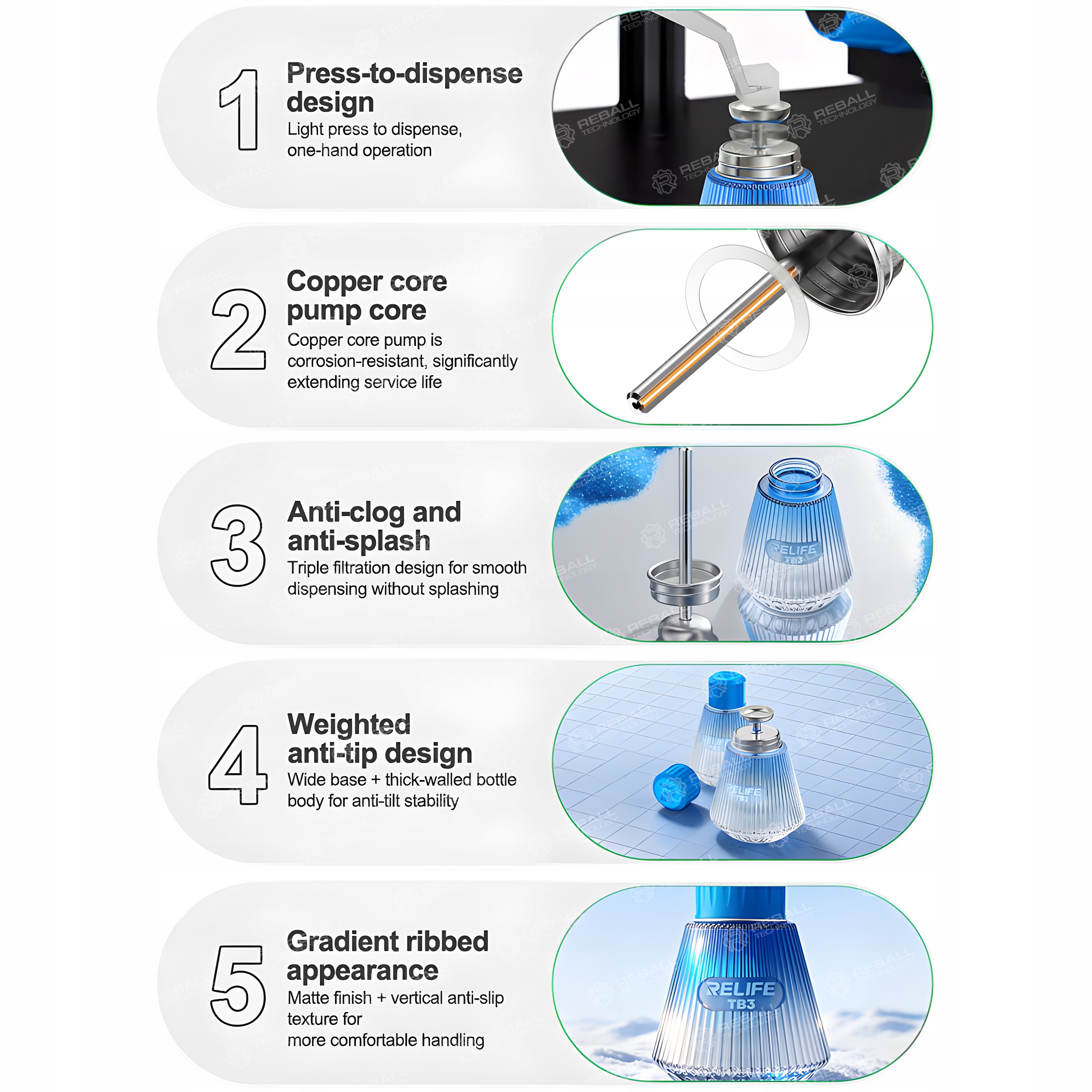 Dzięki zastosowaniu pompki ciśnieniowej z miedzianym rdzeniem umożliwia szybkie i wygodne podawanie cieczy jedną ręką, co znacząco usprawnia pracę przy czyszczeniu PCB, BGA czy elementów SMD.