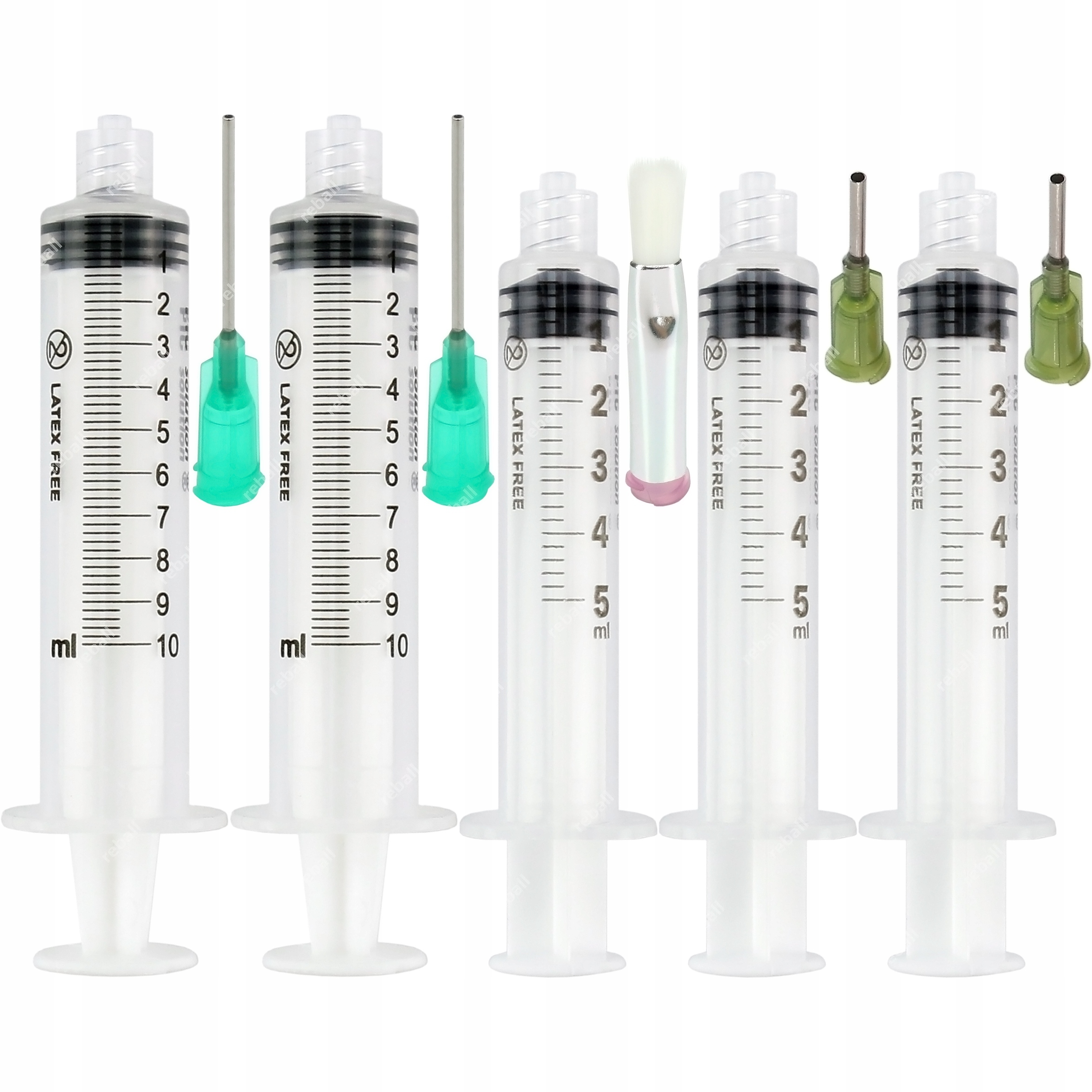 ZESTAW 5x STRZYKAWKA DOZOWNICZA 5x IGŁA DO TOPNIK FLUX PASTA MODELE NAPISY