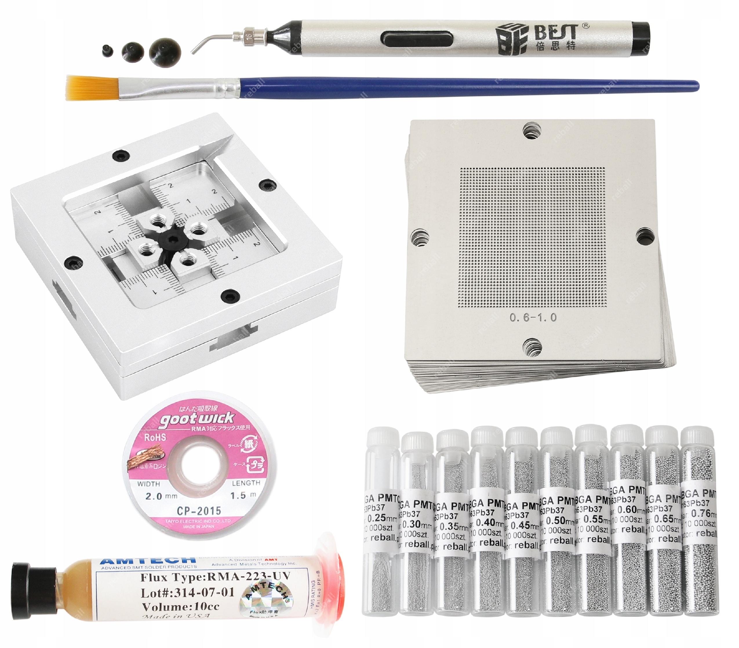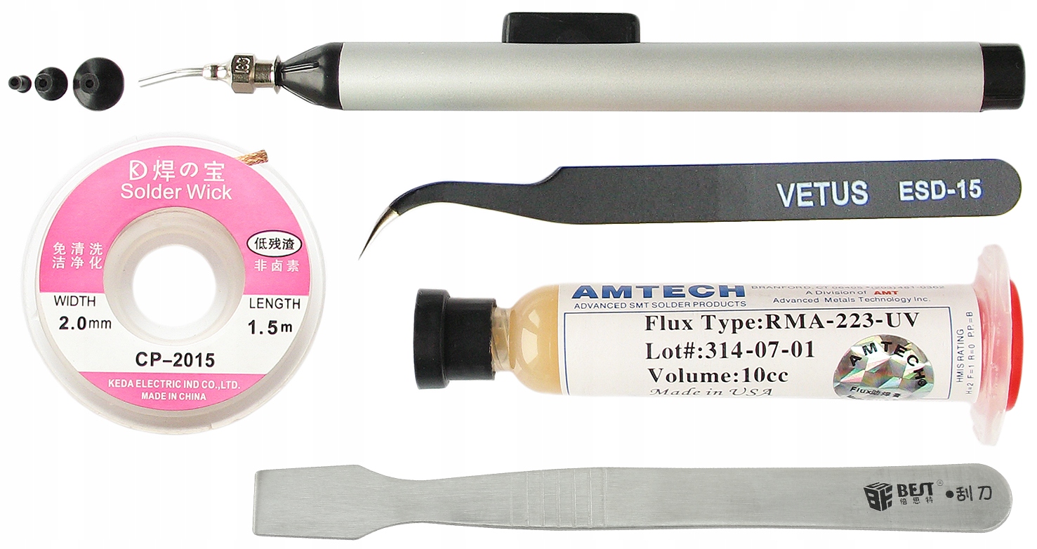TOPNIK FLUX ŻEL AMTECH CHWYTAK PLECIONKA PĘSETA AKCESORIA REBALLING BGA 5x