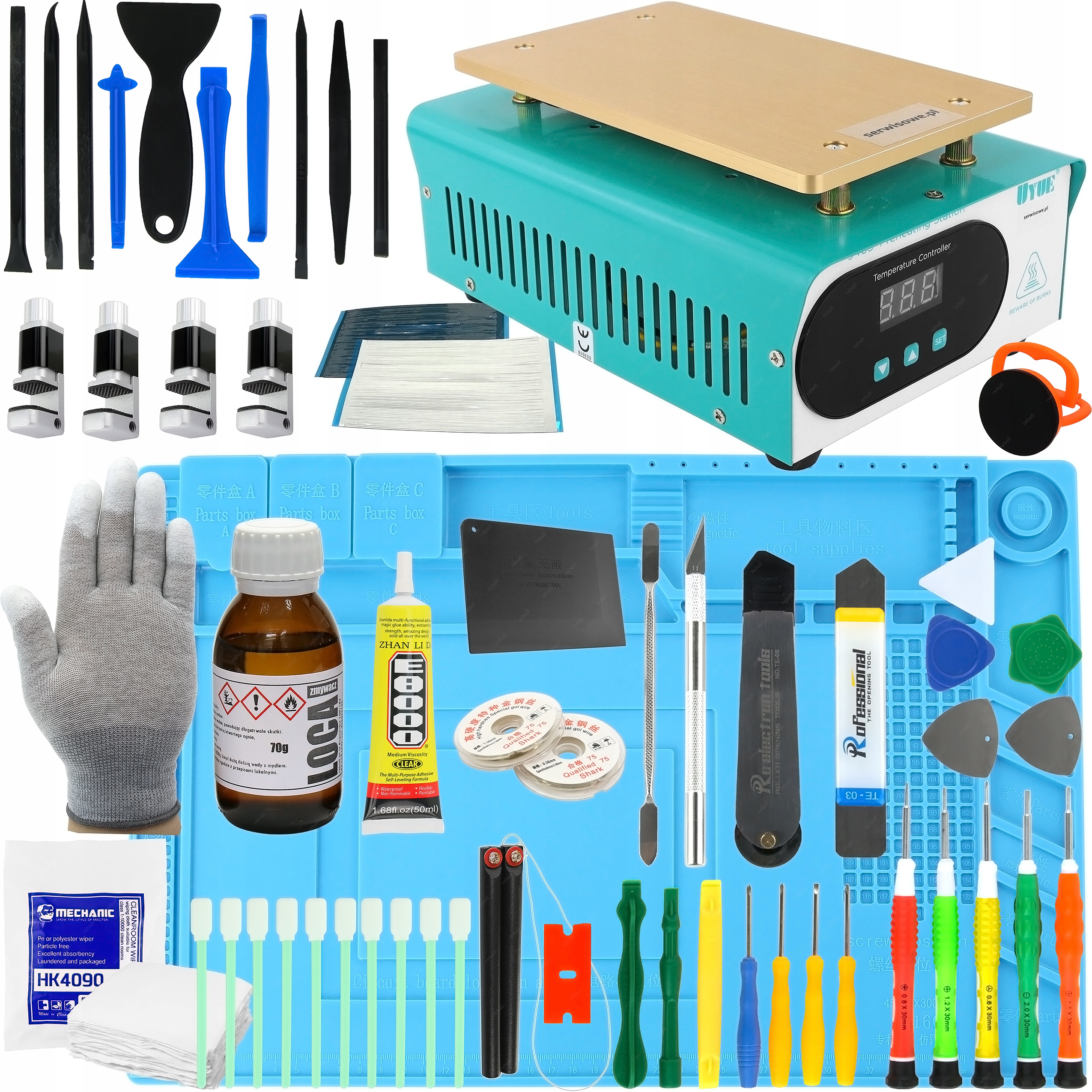 ZESTAW DO NAPRAWY TELEFONÓW TABLETÓW SMARTFONÓW EKRANÓW LAPTOPÓW HOTAIR XXL