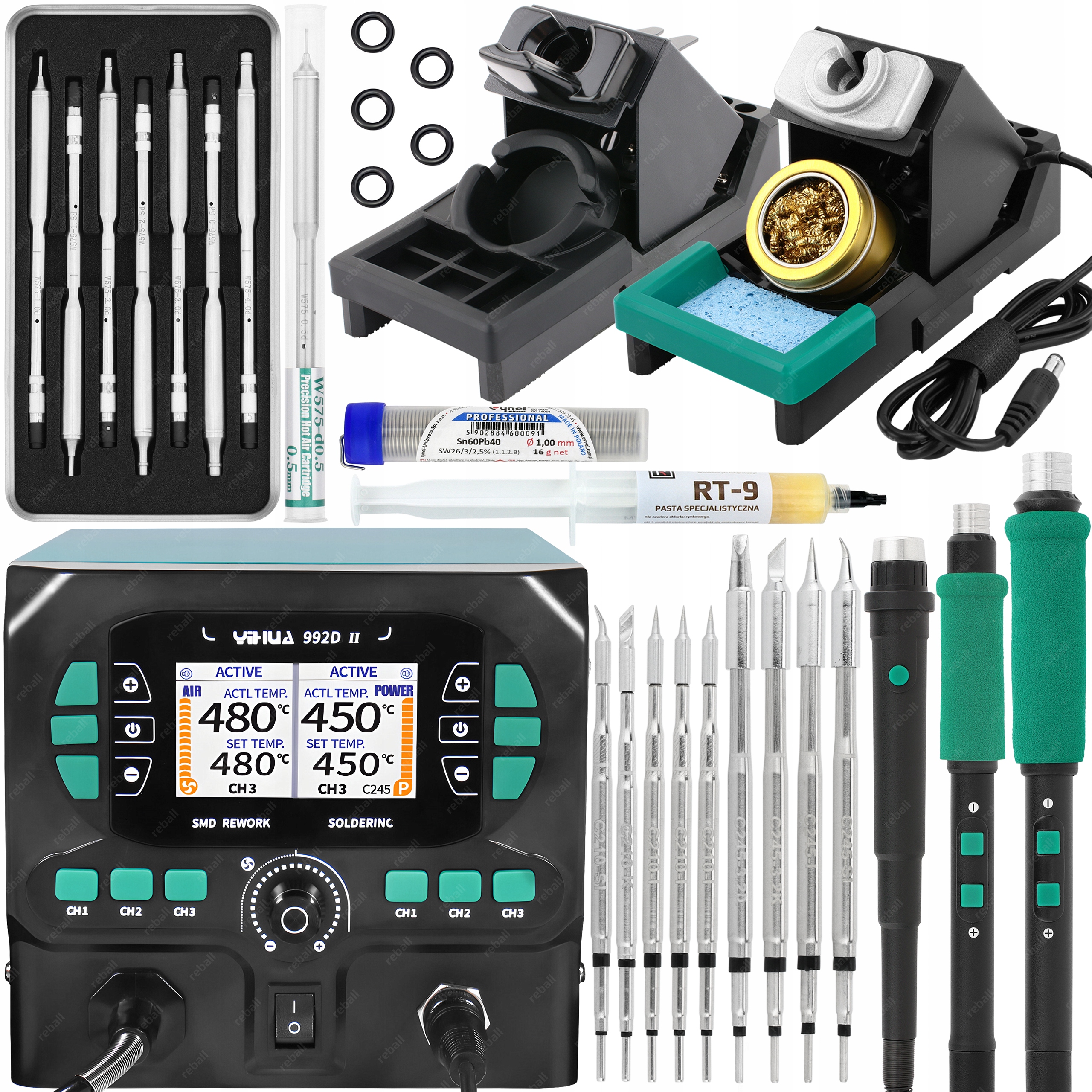 ZESTAW STACJA LUTOWNICZA LUTOWNICA HOT AIR YIHUA 992D-II 6x C245 C210 W575