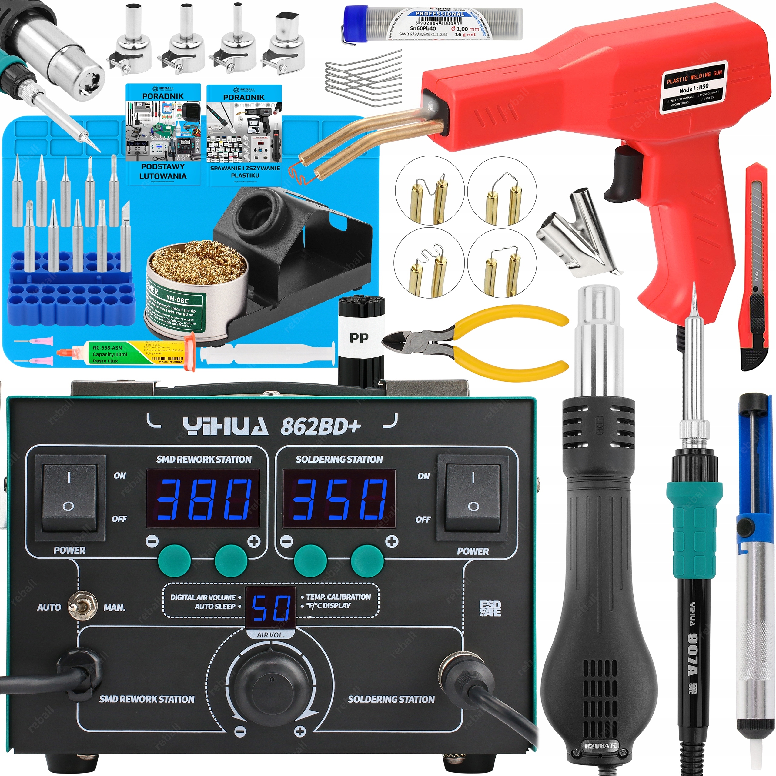 ZESTAW STACJA LUTOWNICZA HOT AIR 2w1 YIHUA 862BD+ ZSZYWARKA PLASTIKU v3