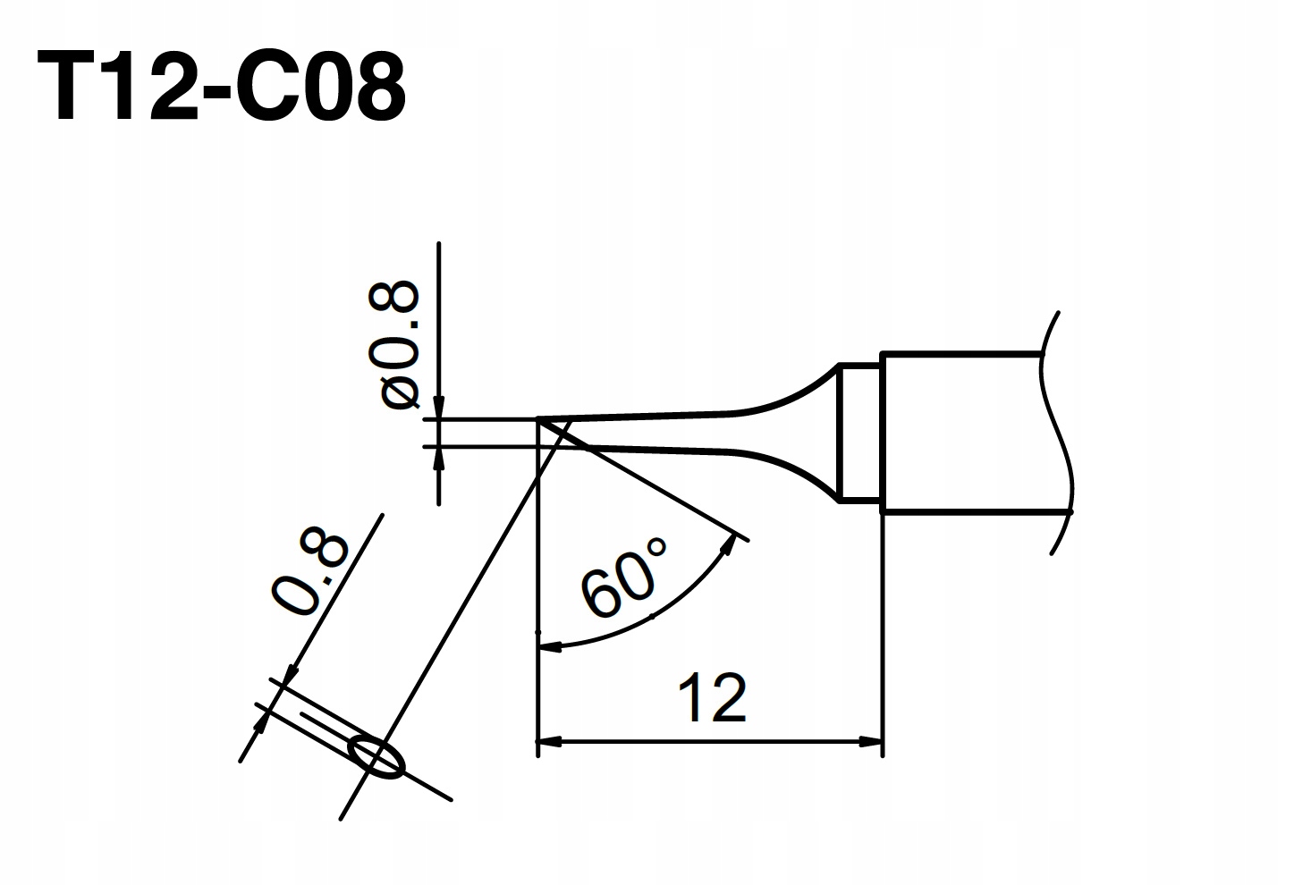 Grot posiada wbudowaną grzałkę. Kompatybilny z większością lutownic na groty T12 m.in. z BAKON 950D, GM-951, AOYUE 2702, OSS TEAM, T12-X, KSGER, Kailiwei oraz wybranymi modelami HAKKO, JOVY.