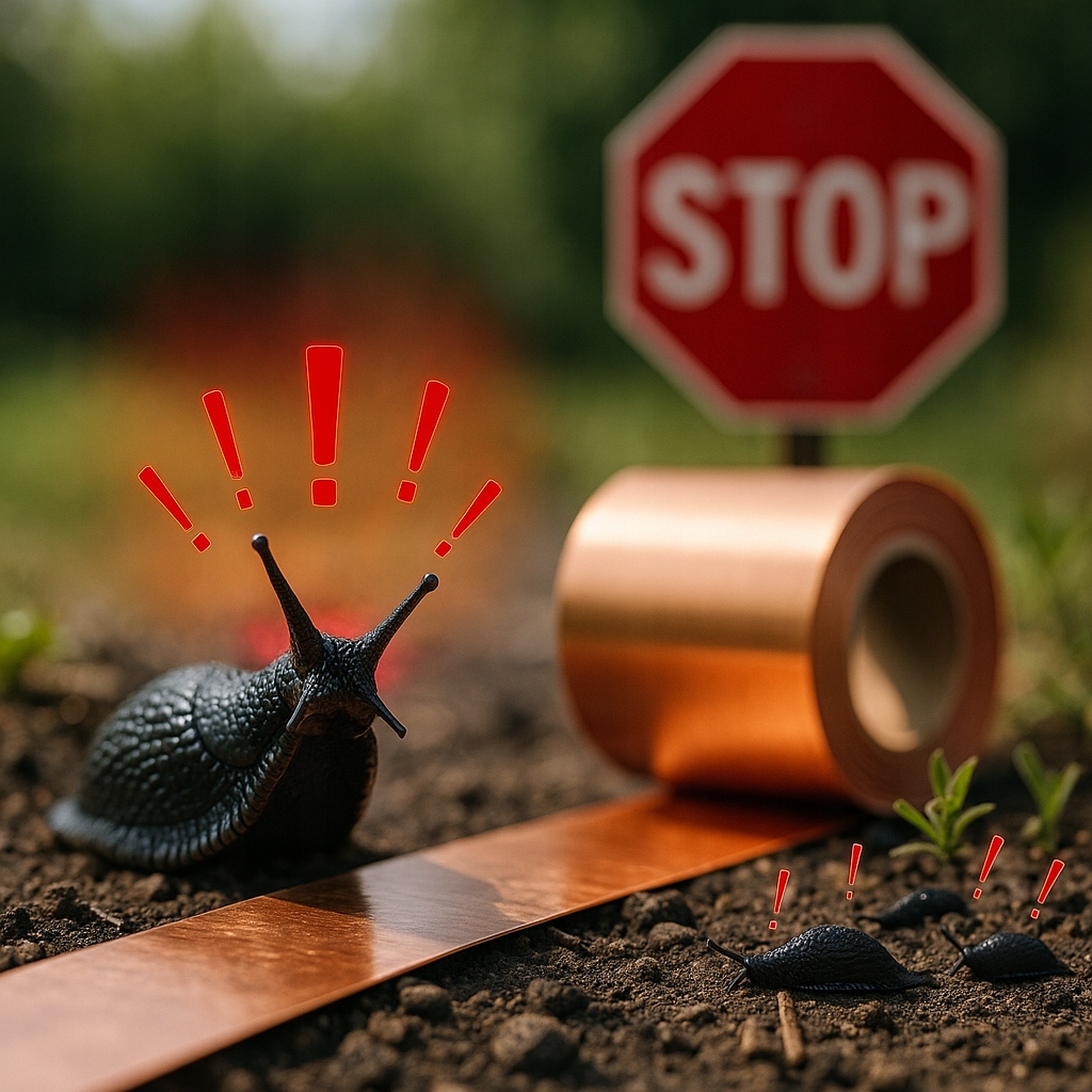 Taśma miedziana jest również skutecznym produktem do odstraszania ślimaków. Gdy śluz ślimaka styka się z miedzią zawartą w taśmie, powstaje słaby impuls elektryczny. Impuls ten jest na tyle nieprzyjemny, że ślimak nie przekroczy taśmy. Utrzymywana w czystości taśma nie wymaga wymiany przez kilka sezonów