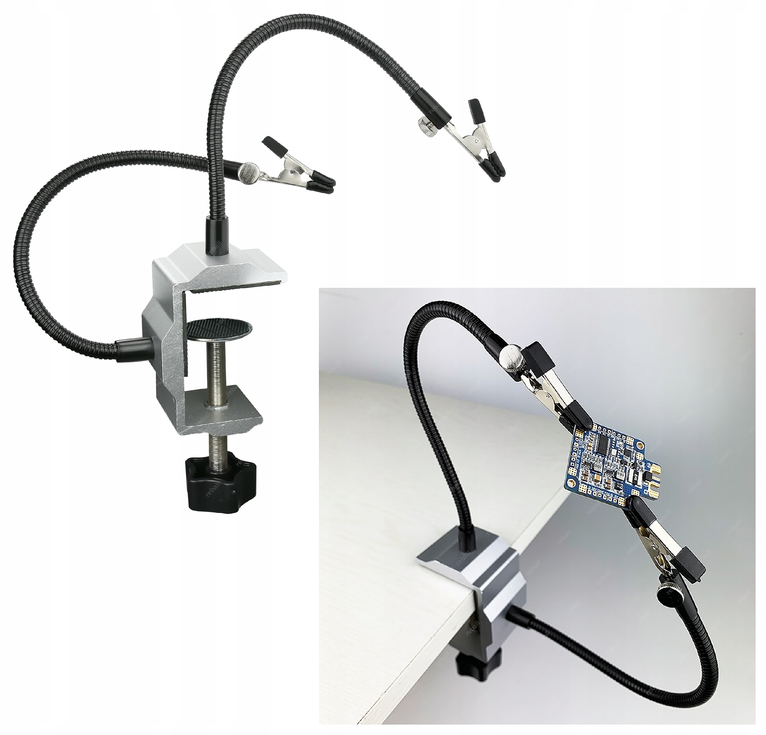 Dodatkowy uchwyt tzw. trzecia ręka niezbędny jest przy wszelkich pracach wymagających dużej precyzji np, przy lutowaniu.