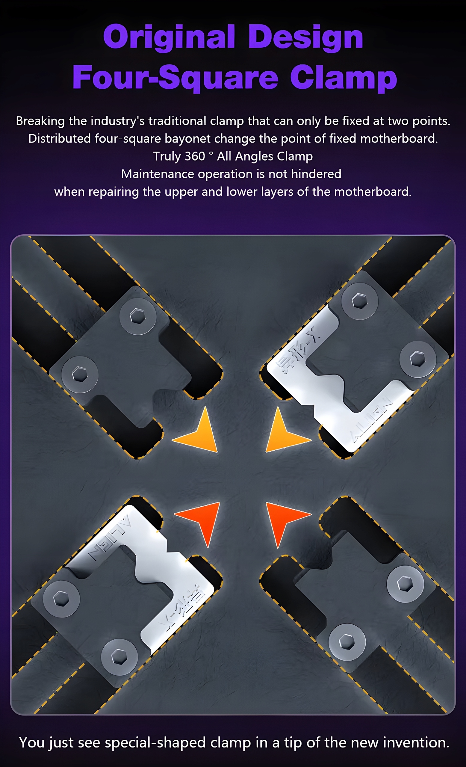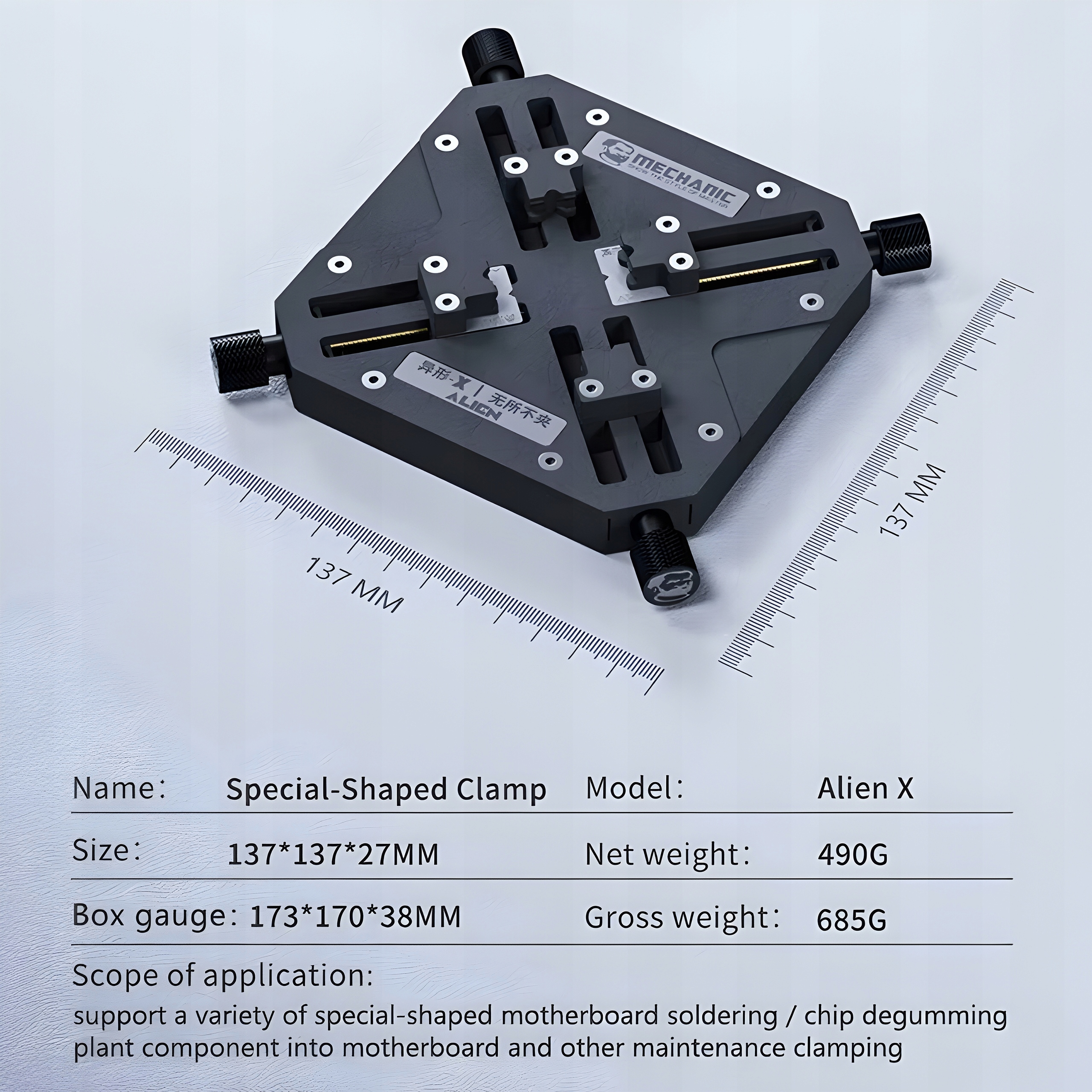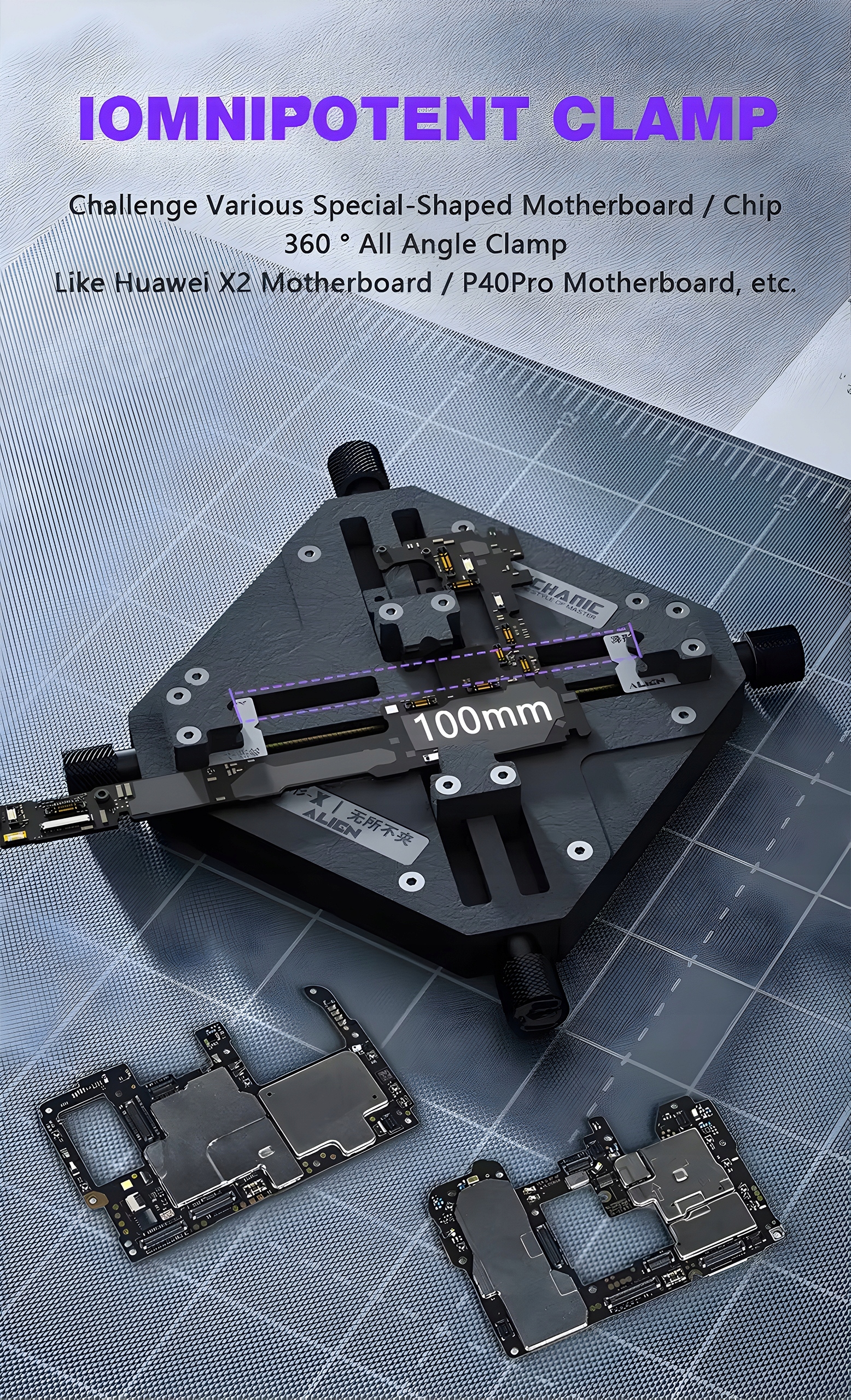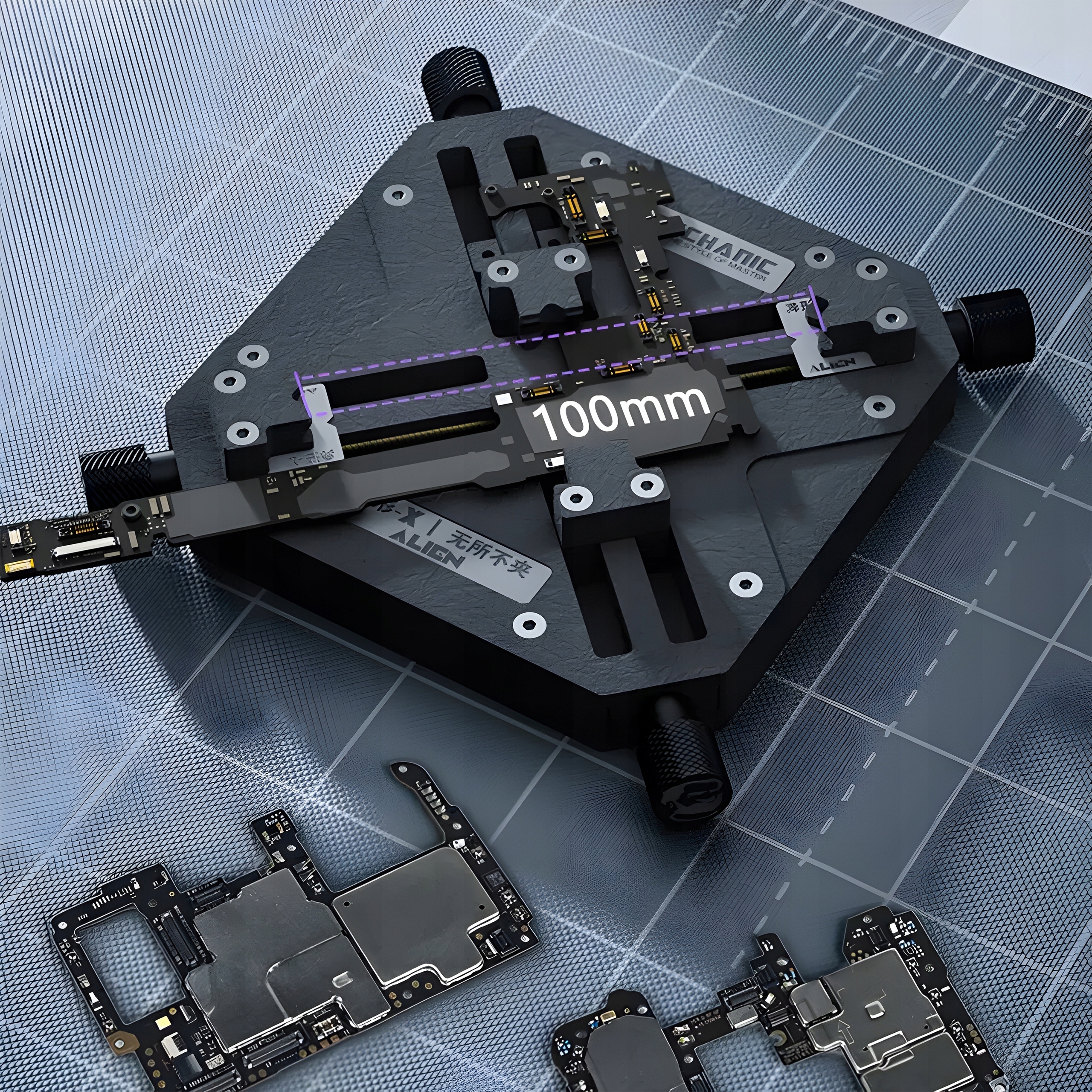 Umożliwia bezpieczne zamocowanie płyty PCB telefonu lub układu BGA i wykonywanie napraw serwisowych bez możliwości przemieszczania się elementów.
