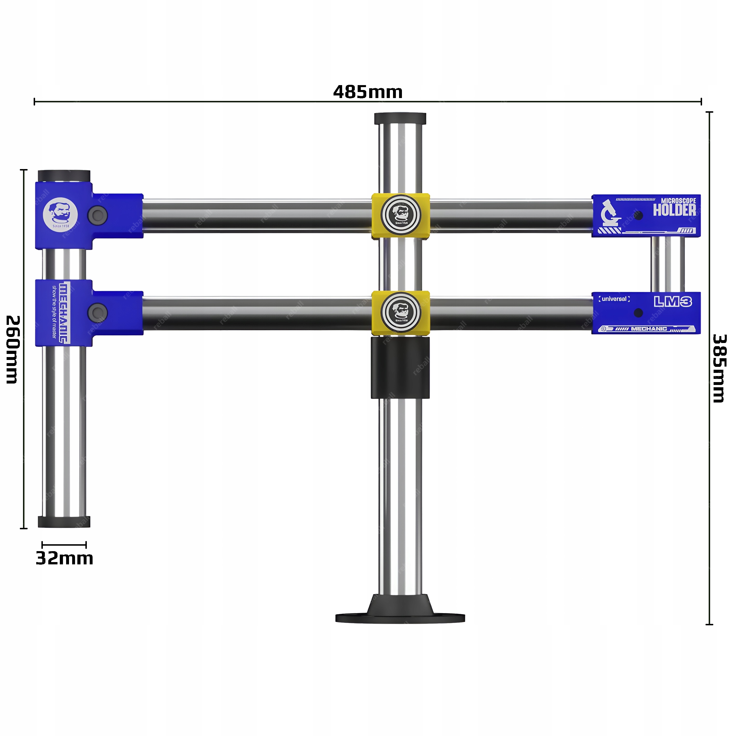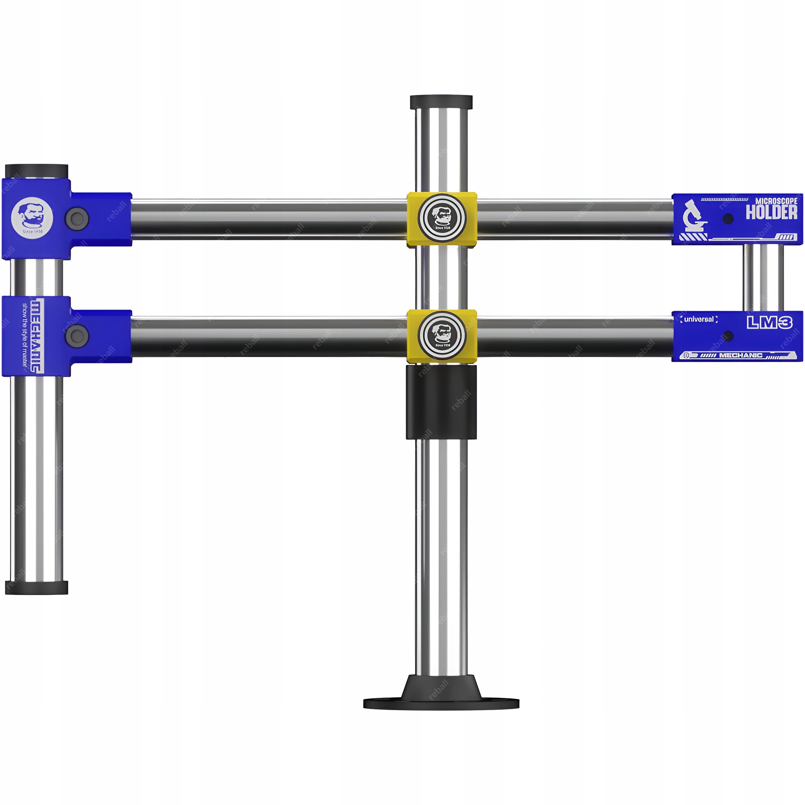LM3 to solidny i wszechstronny uchwyt z podwójnym ramieniem przeznaczony do mikroskopów trójokularowych i stereoskopowych.