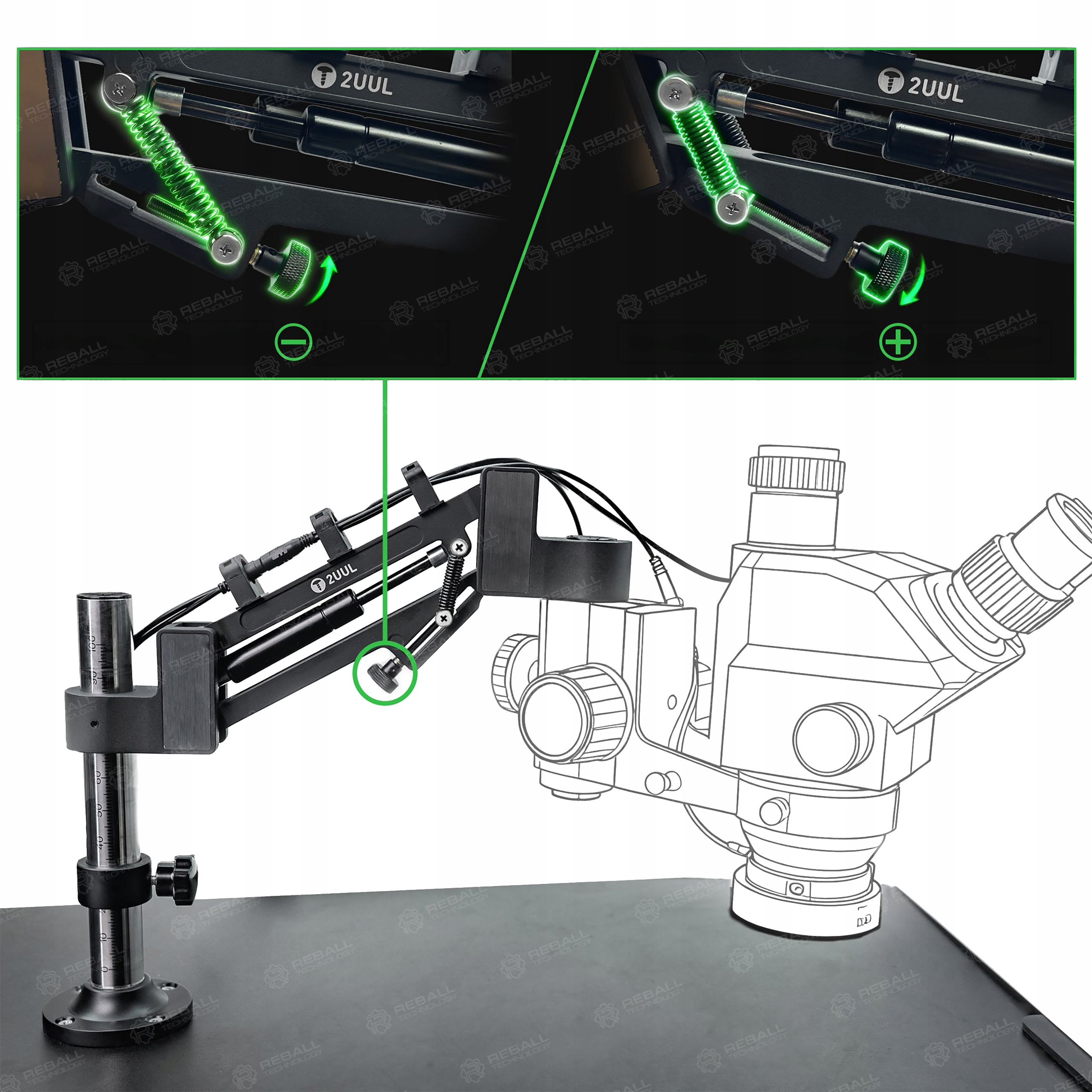 2UUL MS71 to profesjonalny wysięgnik hydrauliczny zaprojektowany do pracy serwisowej i precyzyjnych obserwacji pod mikroskopem.