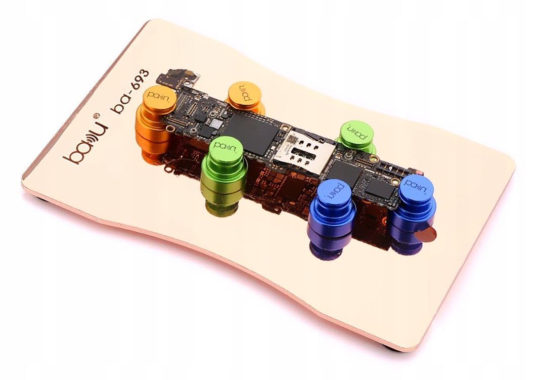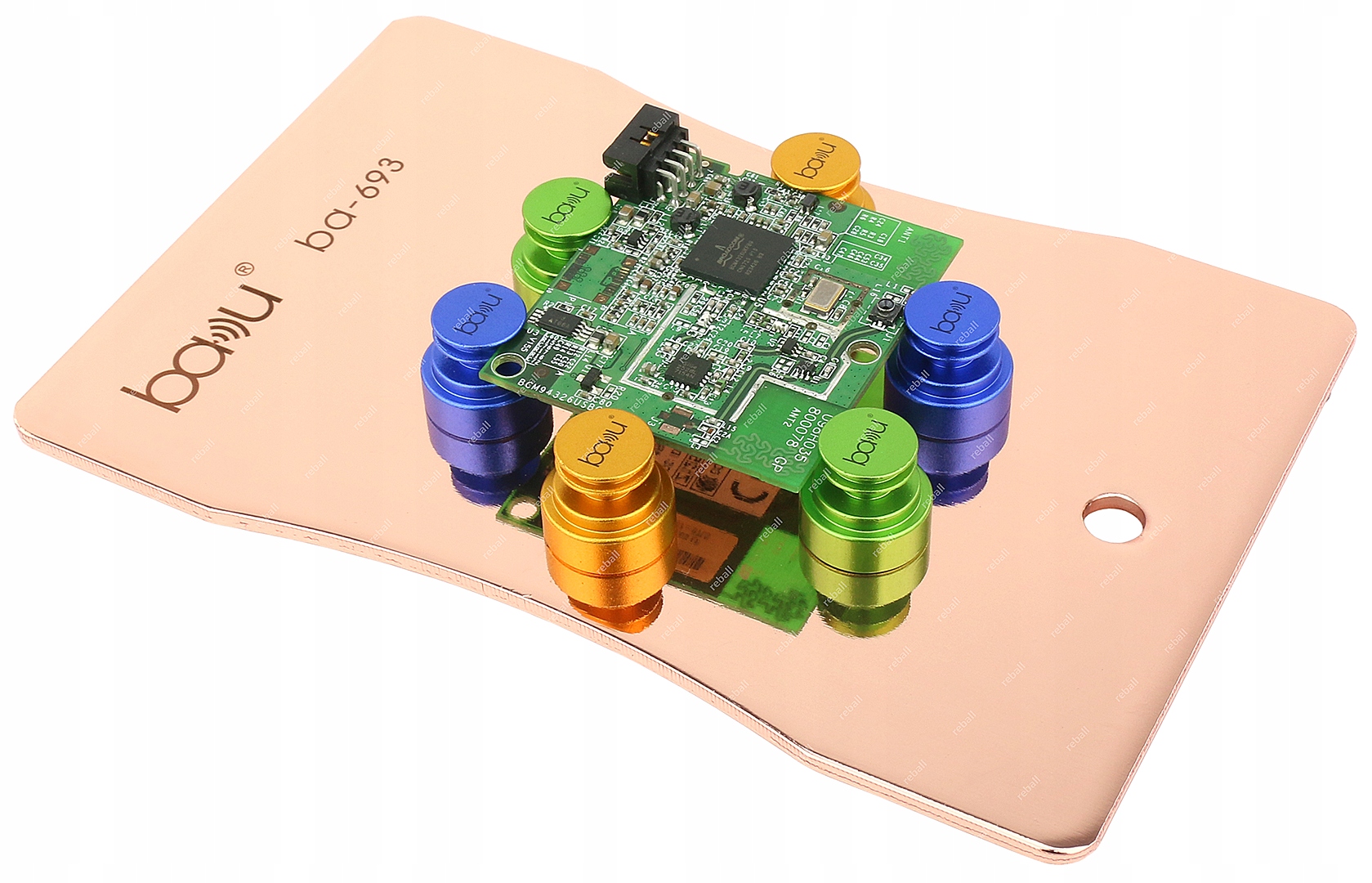 Sześć niezależnych regulowanych uchwytów z wbudowanymi mocnymi magnesami neodymowymi zapewnia wysoką stabilność płyt głównych naprawianych urządzeń.