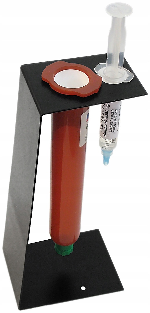 Przedmiotem sprzedaży jest uchwyt / podstawka do kleju UV LOCA 50g oraz wszelkich innych płynów i past w opakowaniach 50g. Uchwyt posiada dwa otwory: mniejszy i większy.