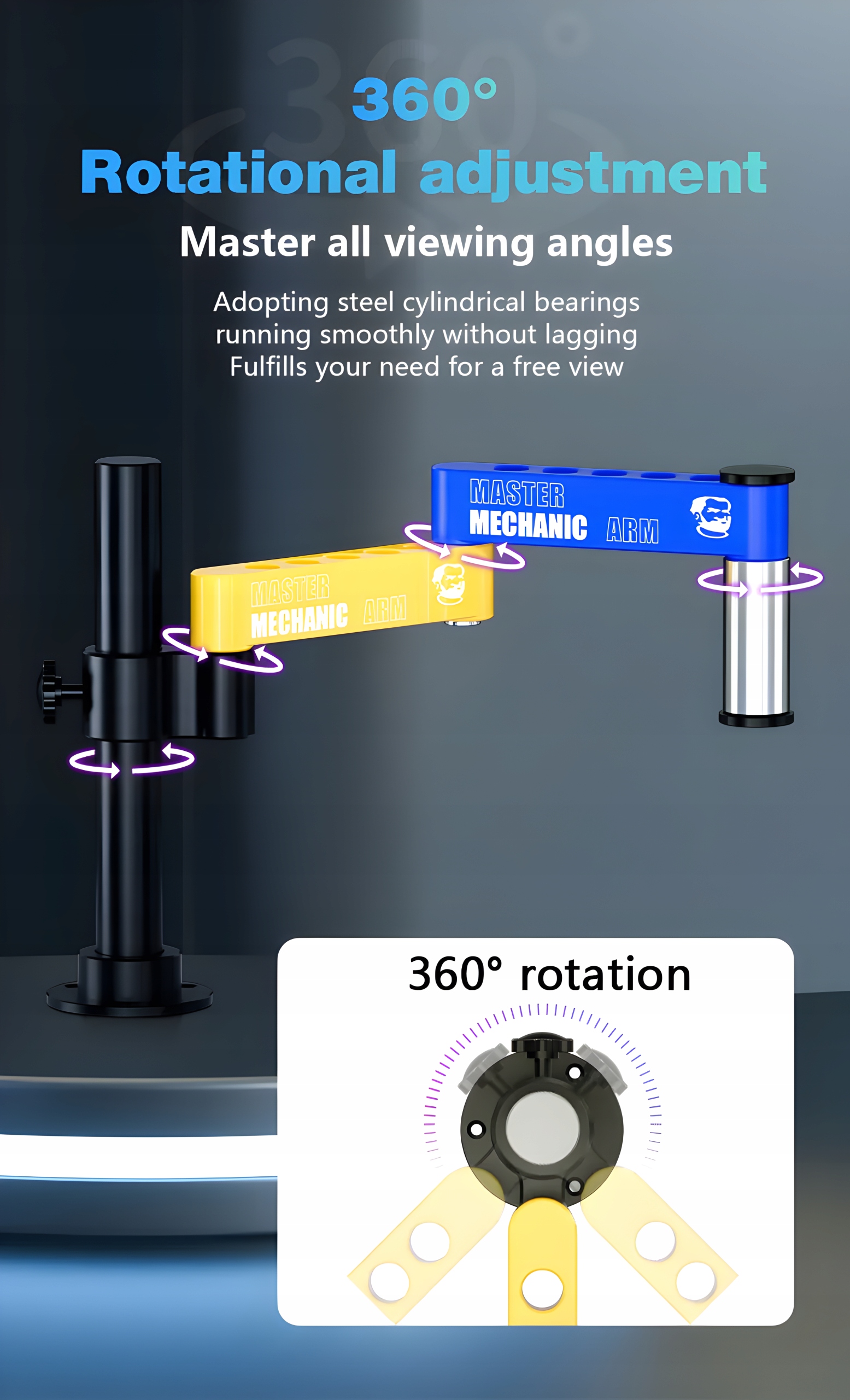 Uchwyt przeznaczony jest do montażu do blatów i stołów głowic stereoskopowych mikroskopów oraz innych urządzeń o otworze montażowym (średnicy) 32mm.