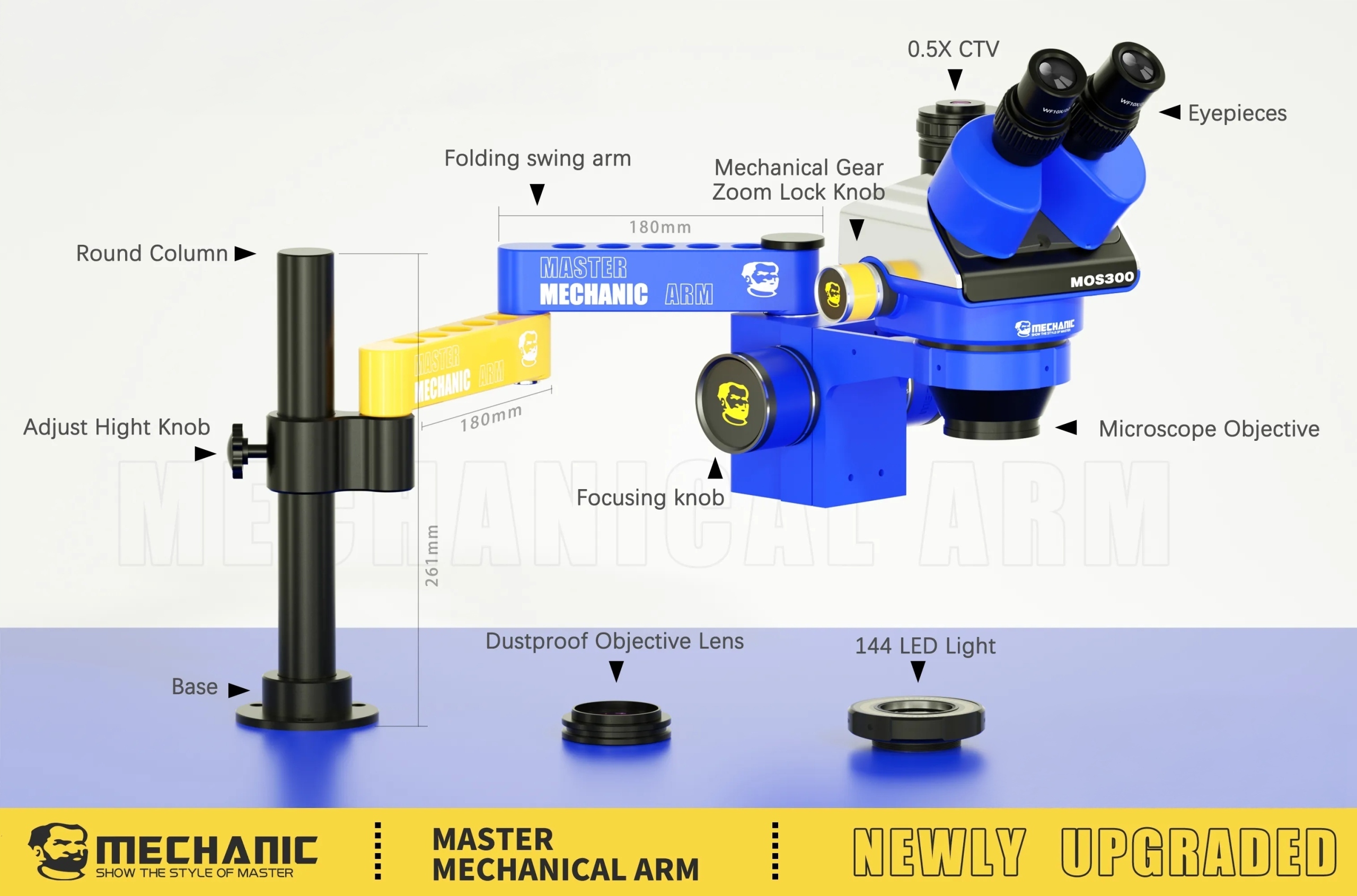 Montowany na wkręty do blatu co gwarantuje wysoką stabilność i skutecznie powiększa zakres pracy z mikroskopem.