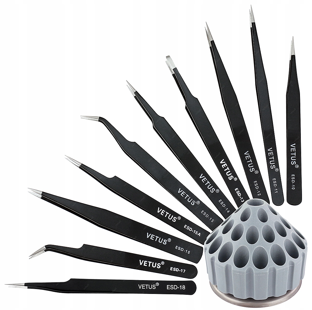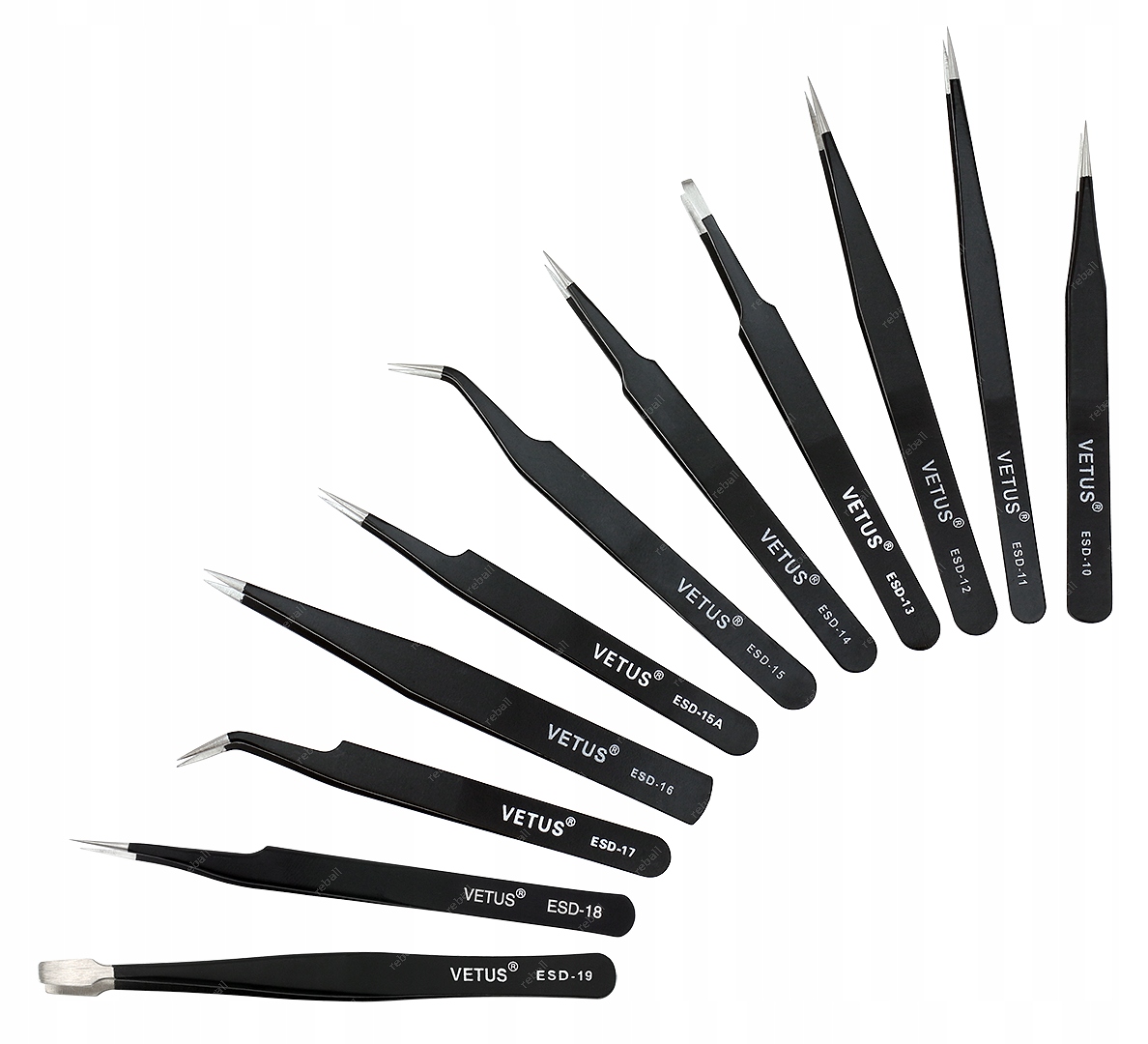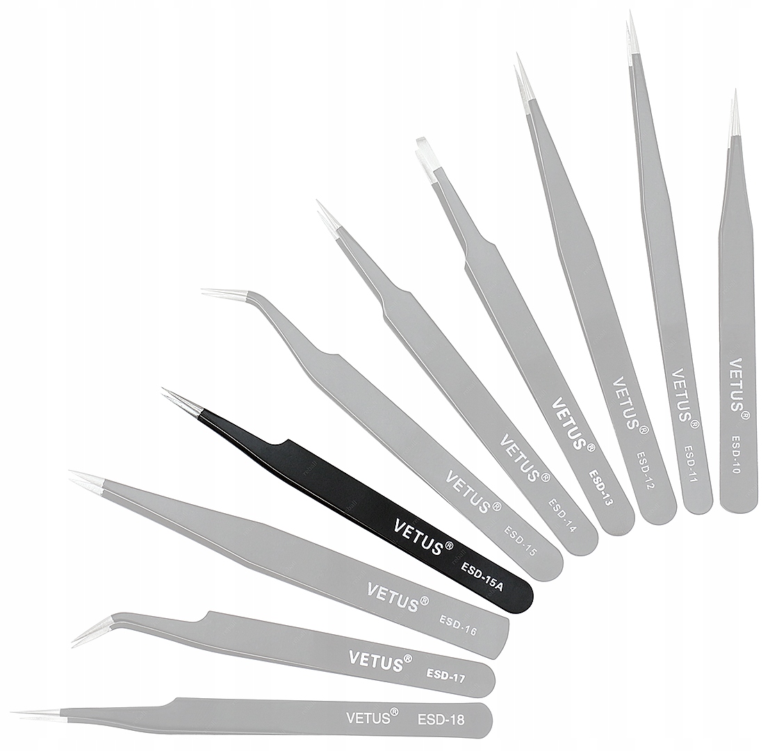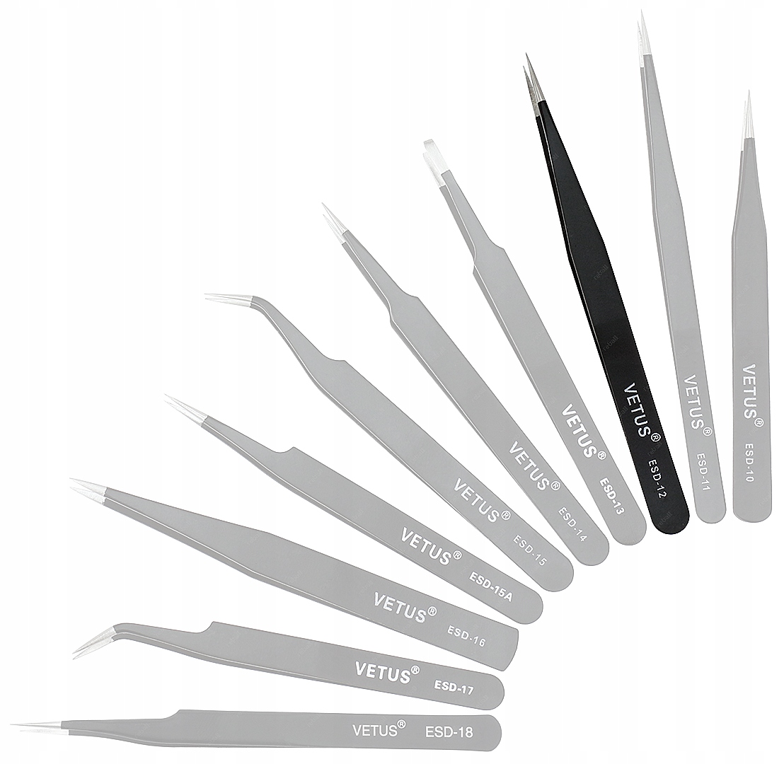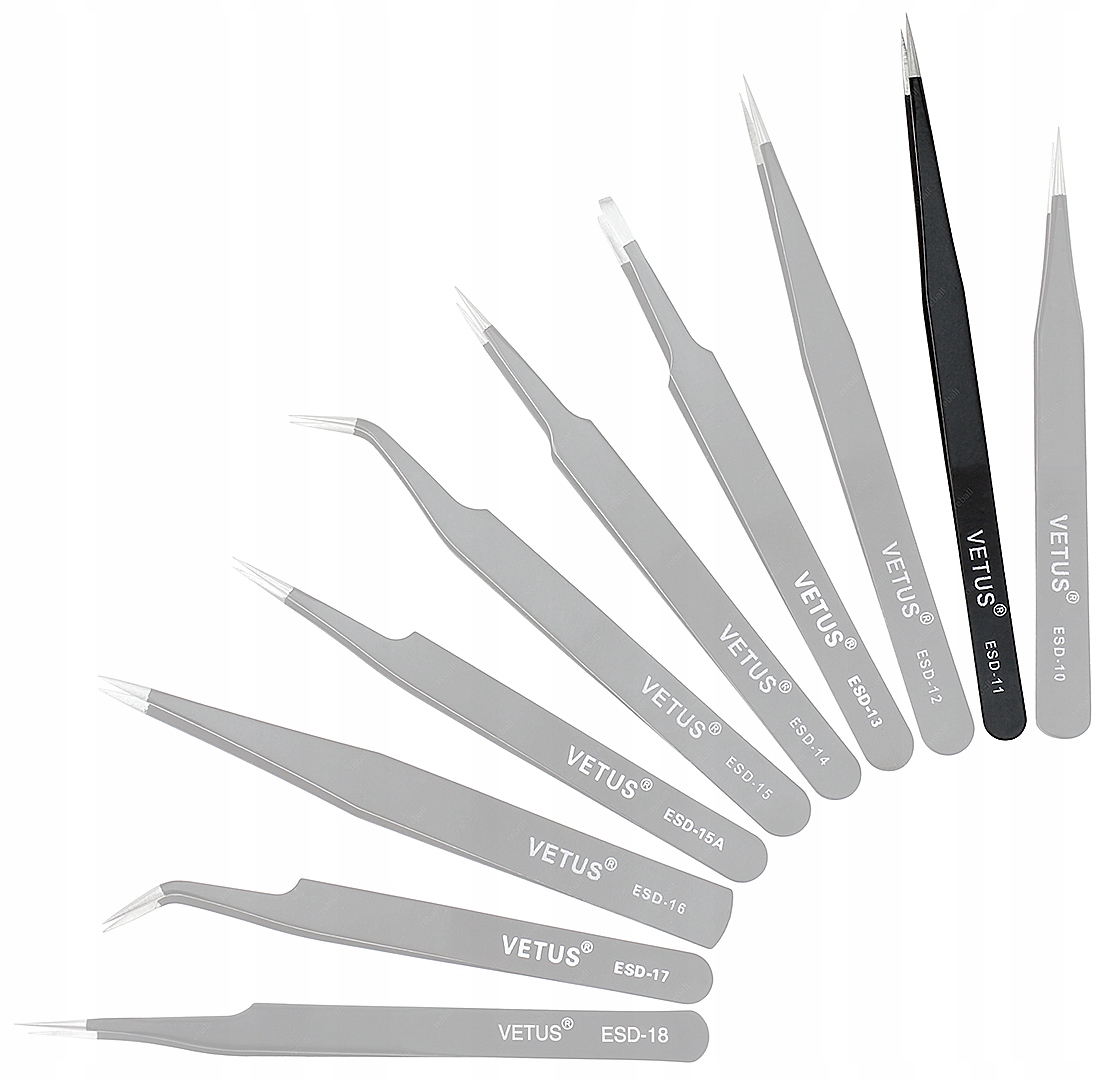 11x PĘSETA PRECYZYJNA PINCETA METALOWA PENSETA DO BRWI RZĘS VETUS ZESTAW