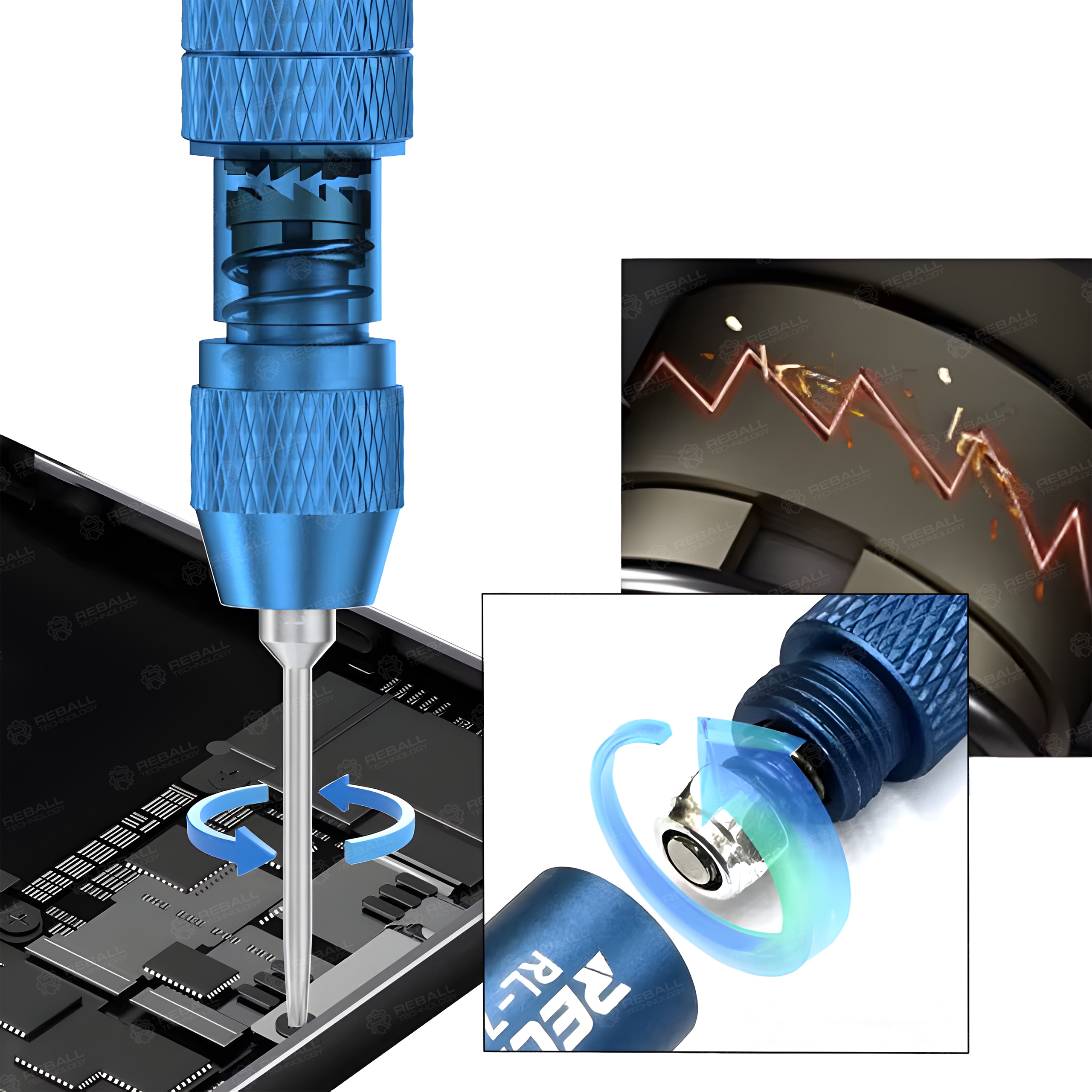 ✅ Obrotowa końcówka 360° na łożysku – większa wygoda przy precyzyjnym skręcaniu.