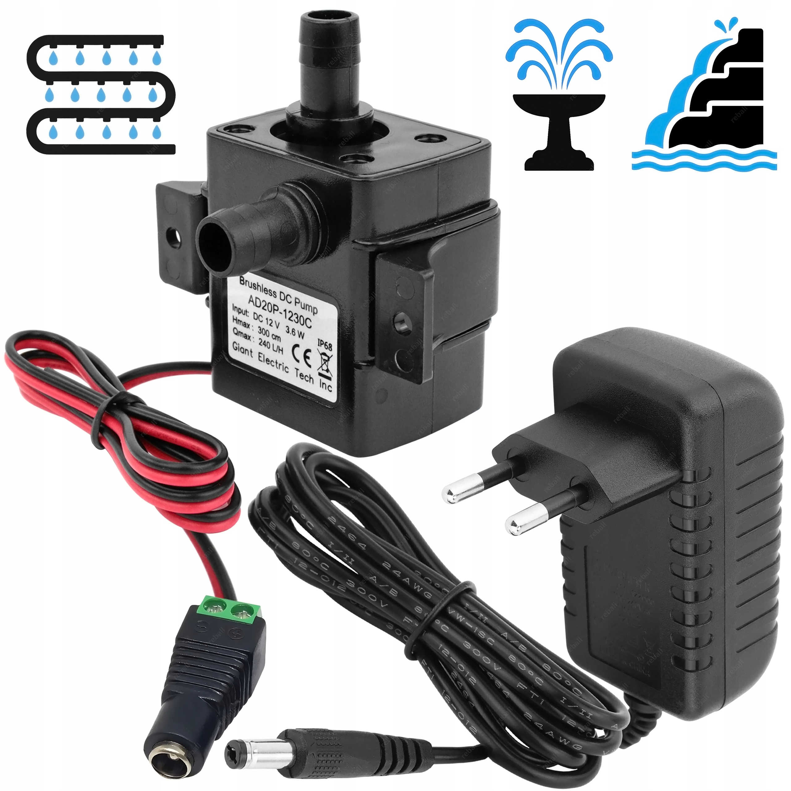 ZESTAW POMPKA POMPA DO WODY OBIEGOWA ZANURZENIOWA OCZKO WODNE+ ZASILACZ 12V