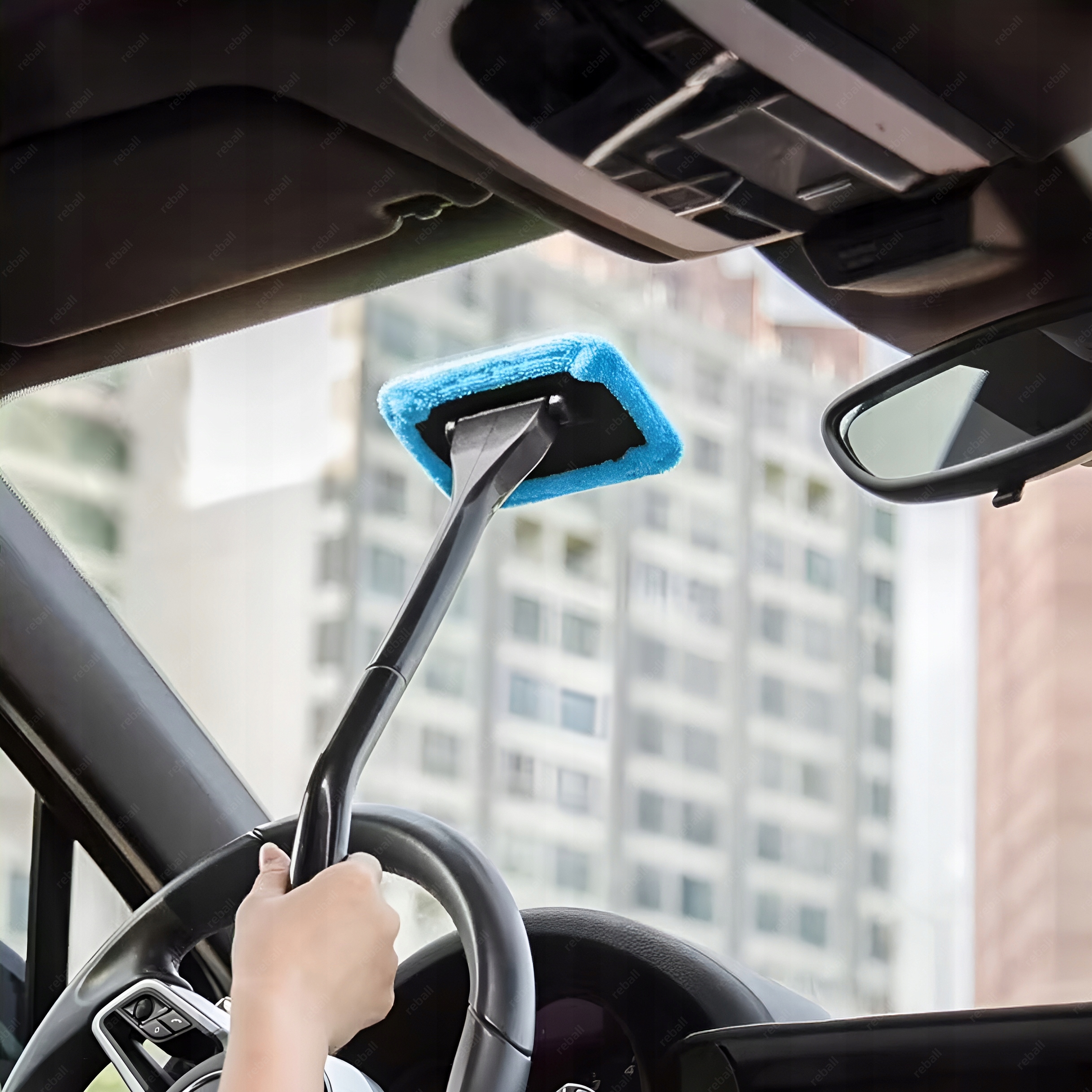 Dzięki regulowanej końcówce łatwo dostosujesz narzędzie do kształtu szyby, a wymienne szmatki z mikrofibry gwarantują doskonałą efektywność czyszczenia.