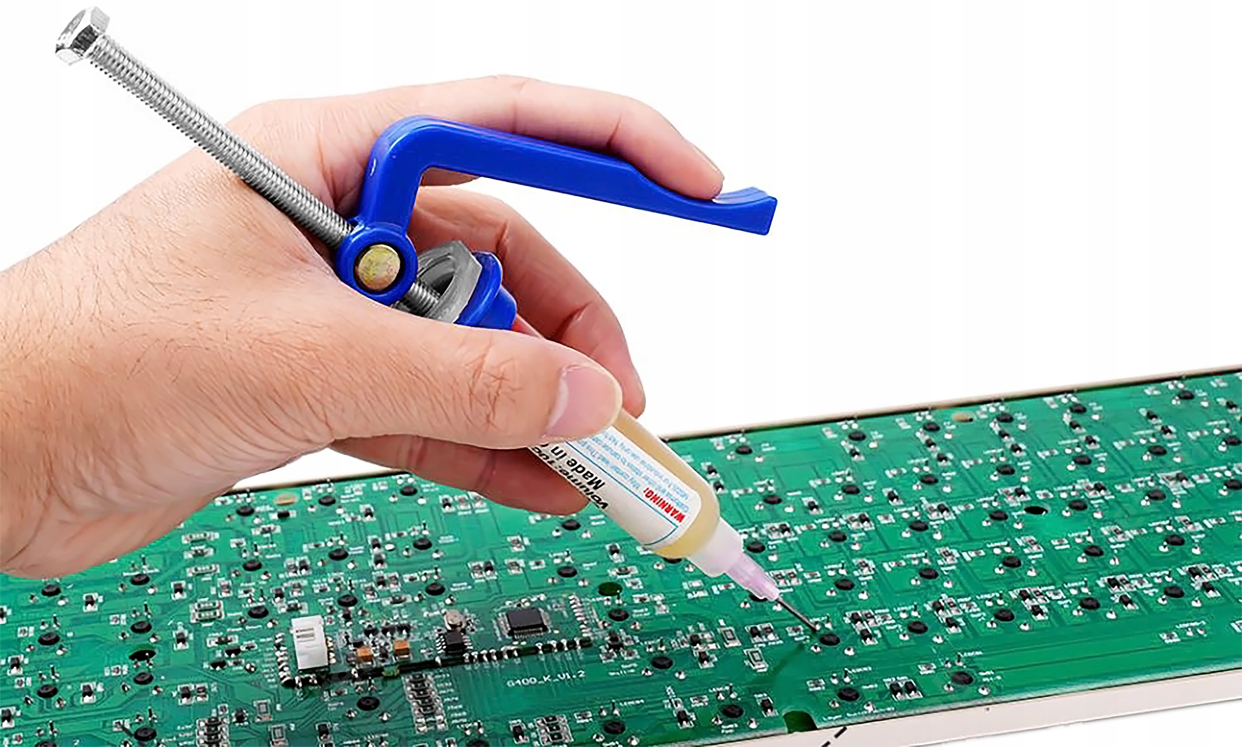 Dzięki ergonomicznemu kształtowi TE-053, użytkownik ma pełną kontrolę nad ilością substancji chemicznej wypuszczanej z strzykawki, co jest kluczowe w elektronice, gdzie nawet niewielka nadmiarowa ilość substancji może wpłynąć negatywnie na elementy elektroniczne.
