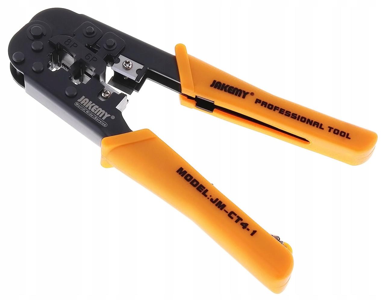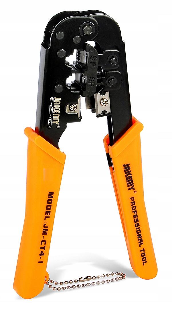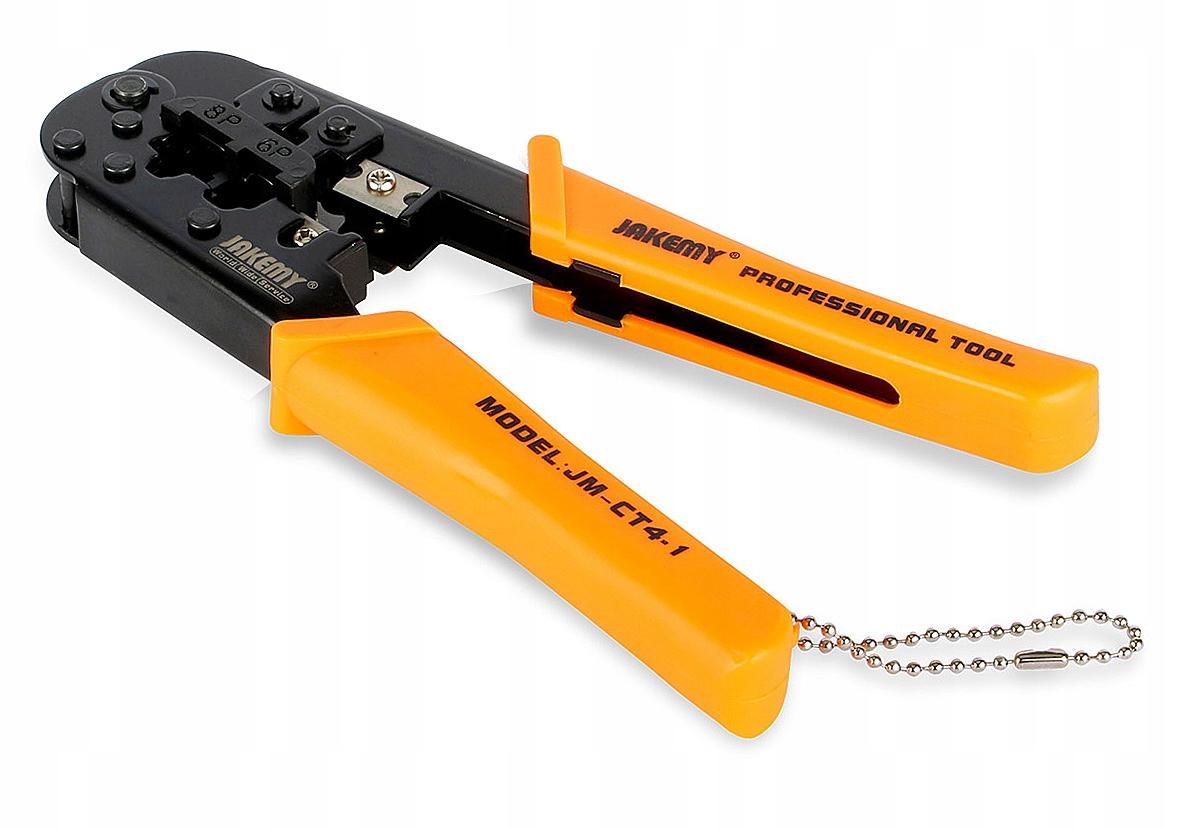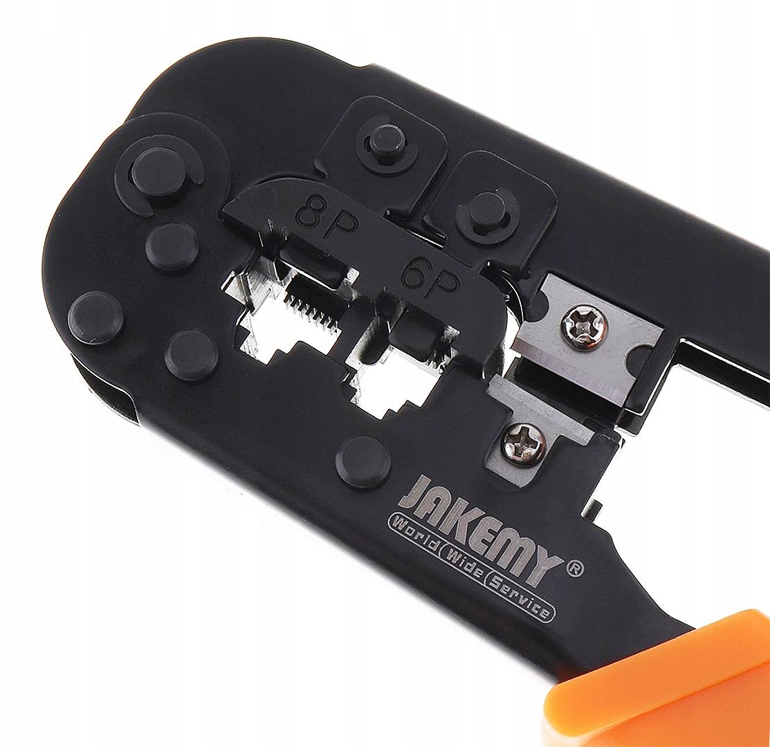 Profesjonalna zaciskarka wtyków modularnych, służąca do zaciskania na przewodzie wtyków 8 pinowych (np. komputerowych) oraz 6 pinowych i 4 pinowych (np. telefonicznych).