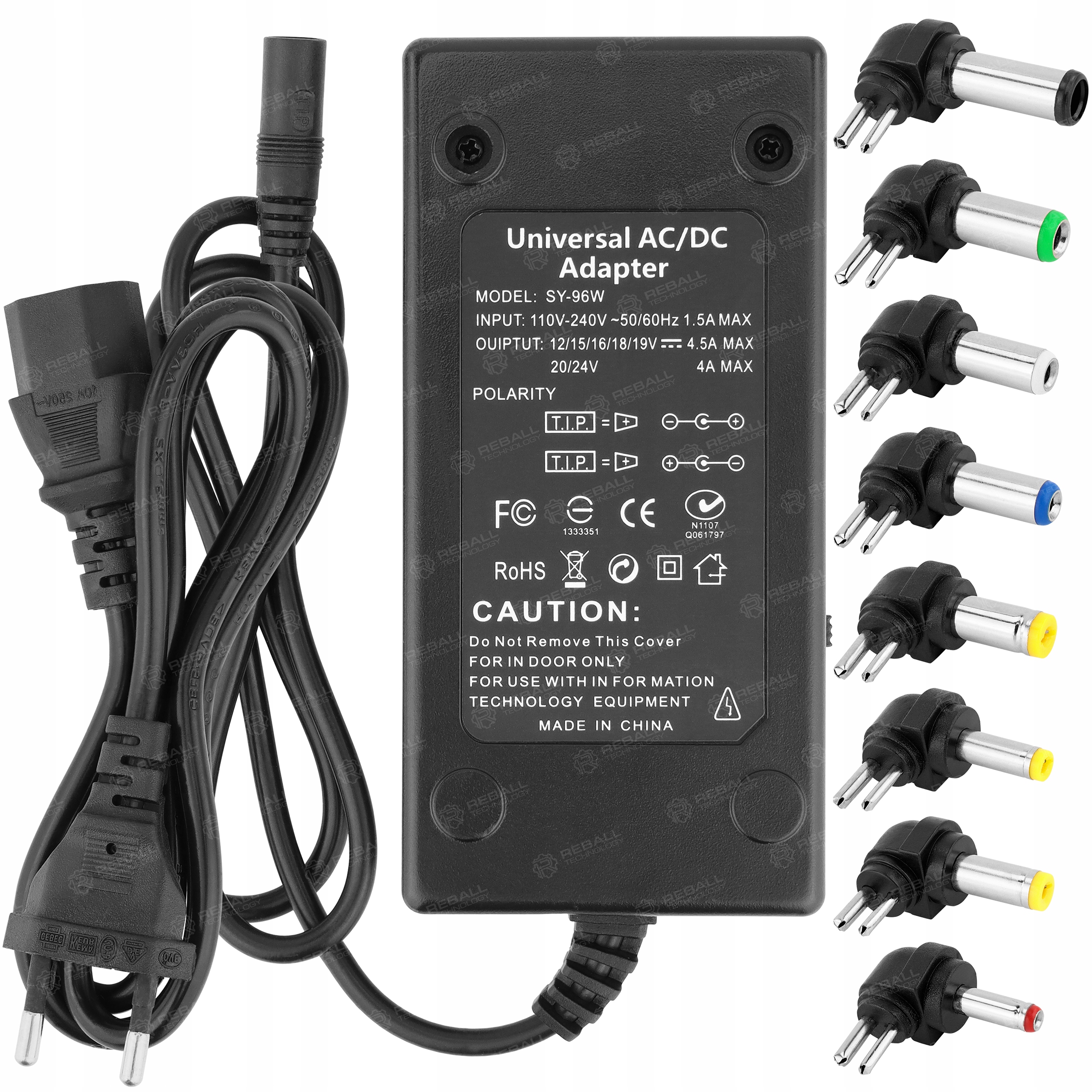 Zasilacz sieciowy regulowany 96W z wymiennymi końcówkami DC
