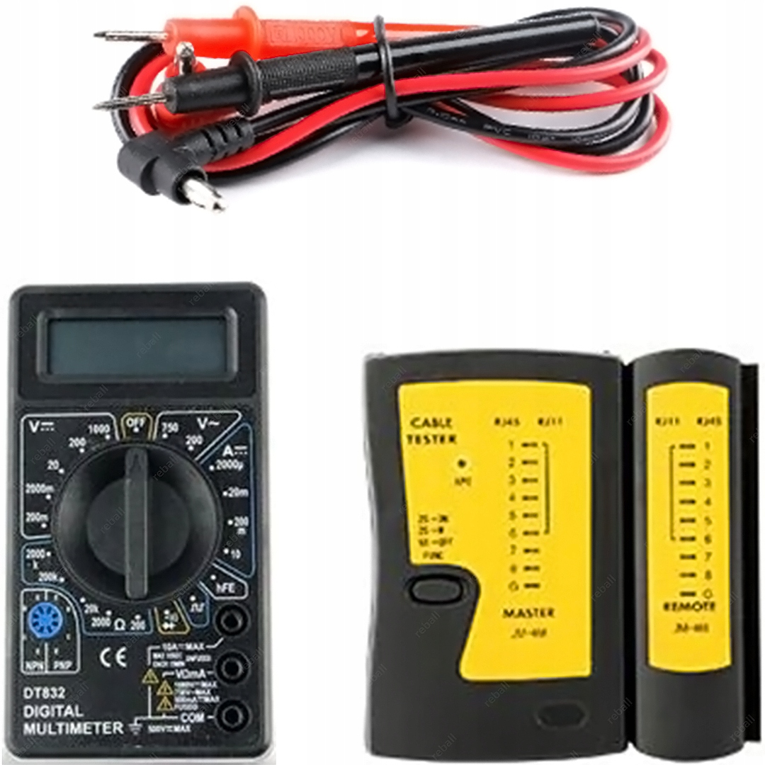 Precyzyjny tester kabli przeznaczony do sprawdzania ciągłości kabli sieciowych. Umożliwia wykrycie błędnych połączeń, zwarć oraz przerw w okablowaniu. Przy jego pomocy można testować połączenia wykonane skrętką UTP, FTP zakończonych wtykami RJ45 oraz przewód telefoniczny zakończony złączem RJ11.