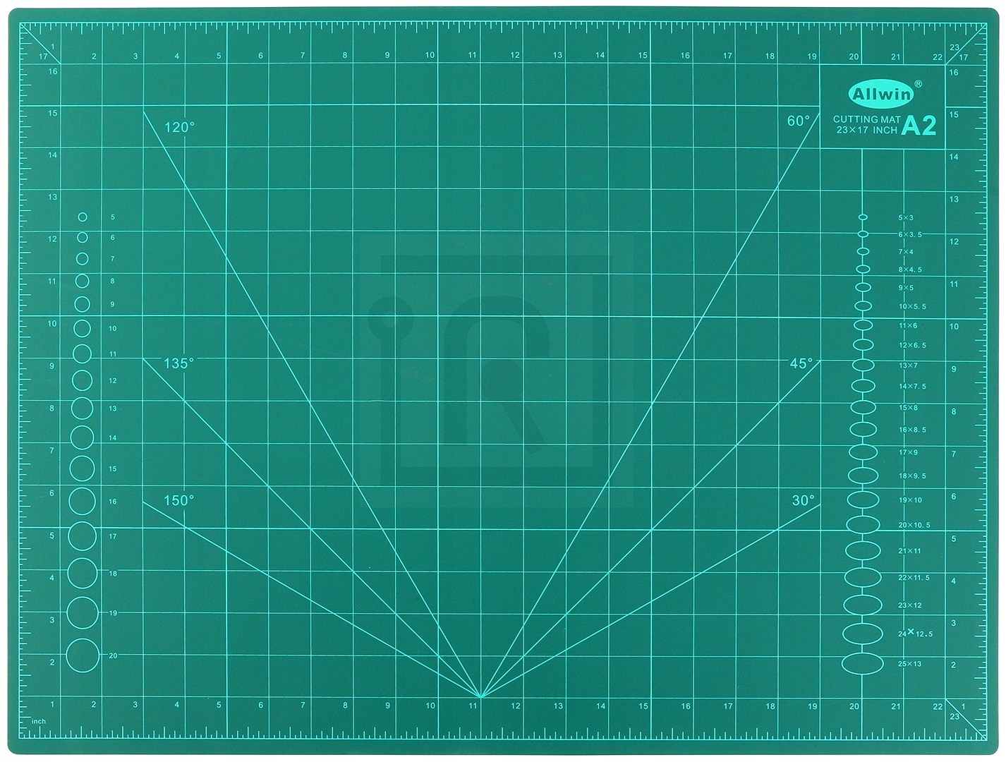 Mata posiada nadrukowane podziałki do precyzyjnego cięcia, kąty oraz miarkę metryczną.