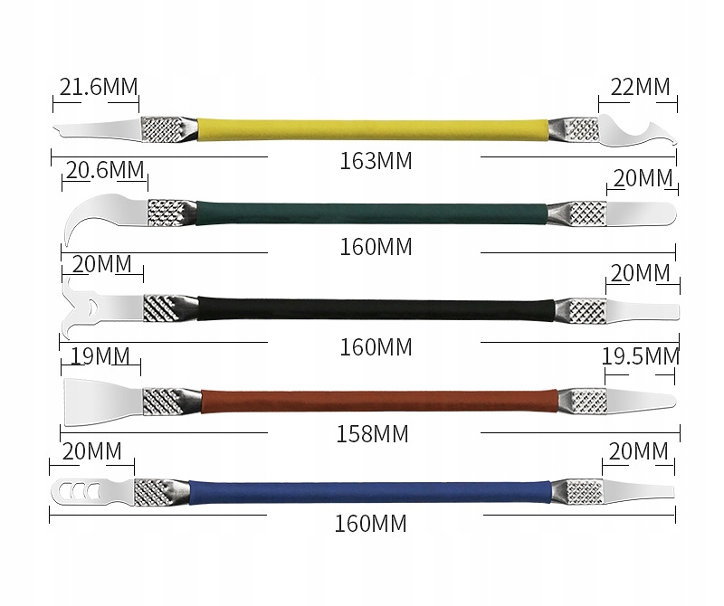 Grubość końcówek 0,10mm. Długość narzędzi: 158-163mm