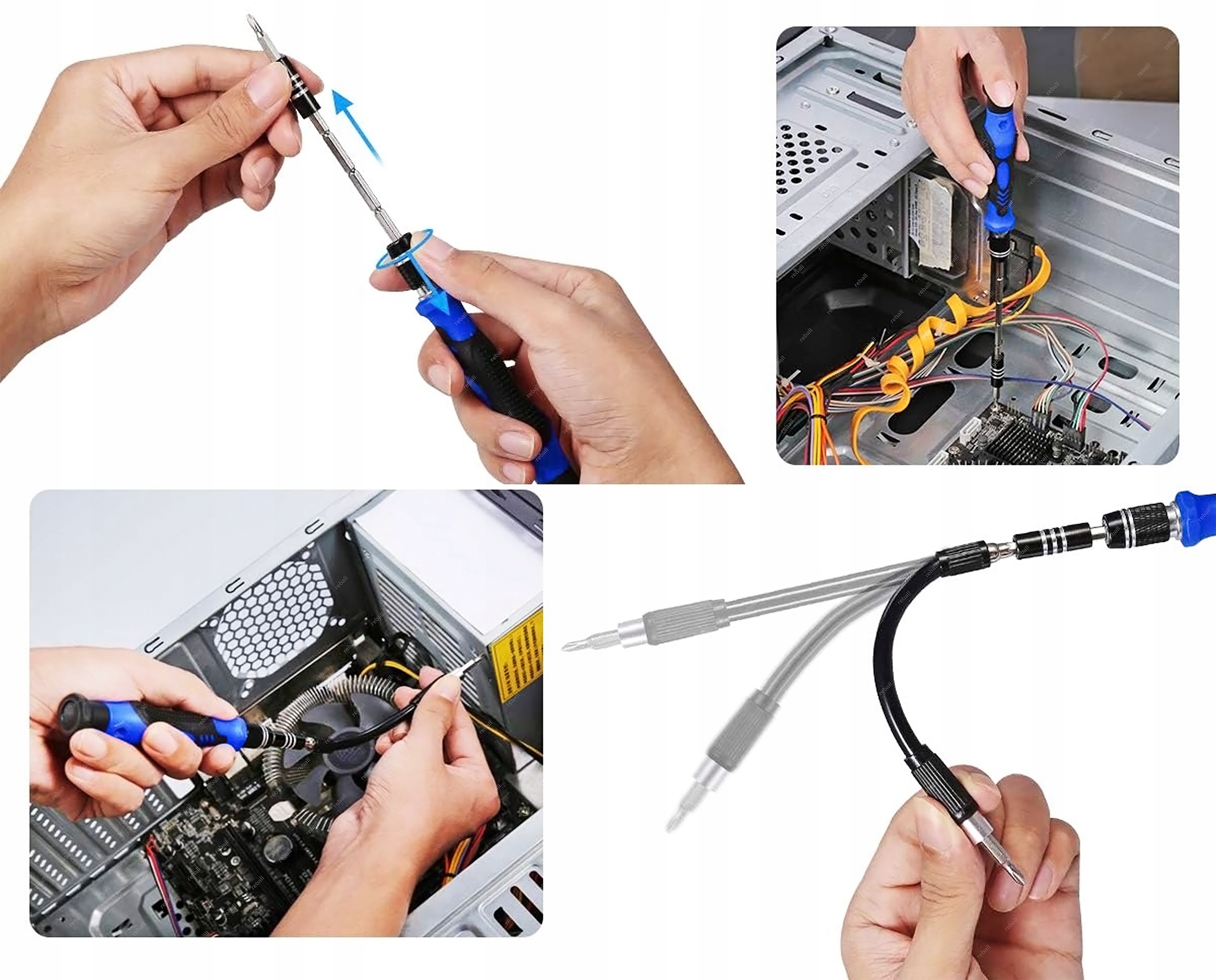 Zestaw posiada ergonomiczny praktyczny wkrętak o niewielkiej wadze. Śrubokręt nadaje się idealnie do prac w miejscach trudno dostępnych miejscach. Wkrętak został stworzony z myślą trójwymiarowej antypoślizgowej konstrukcji usprawniająca chwyt.