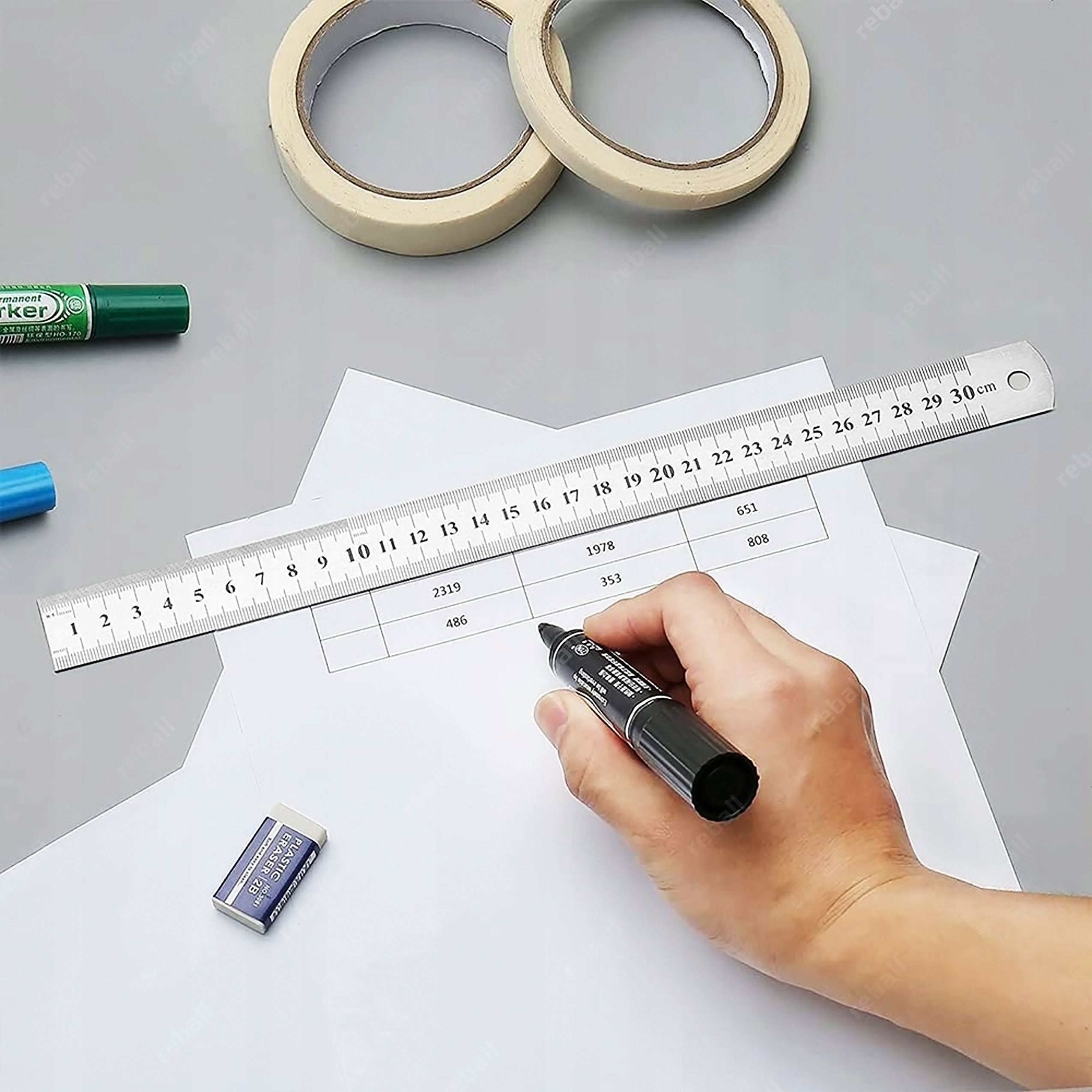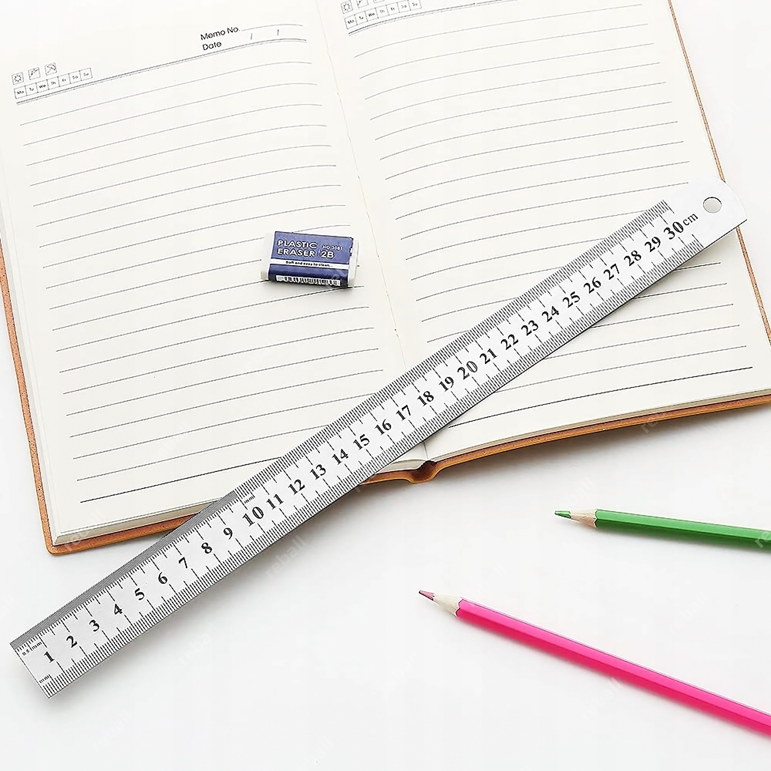 Metalowa linijka dwustronna elastyczna to precyzyjne narzędzie pomiarowe, składające się z metalowego paska z oznaczeniami na obu końcach.