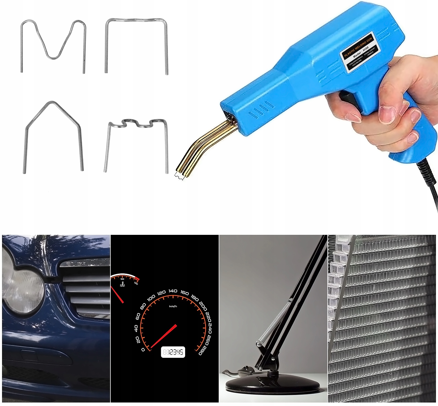 W zestawie 200 zszywek za pomocą których urządzenie trwale połączy ze sobą pęknięte elementy plastikowe a miejsce łączenia będzie odporne na wstrząsy i skręcanie.