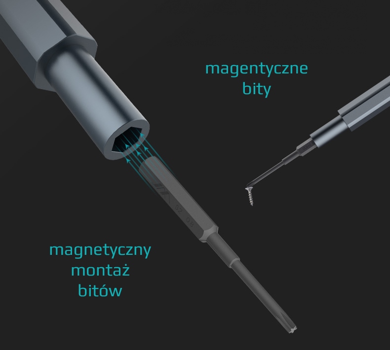 Magnetyczne końcówki bitów ułatwiają pobranie śrubki bądź podkładki i prowadzenie w ciężko dostępnych miejscach.