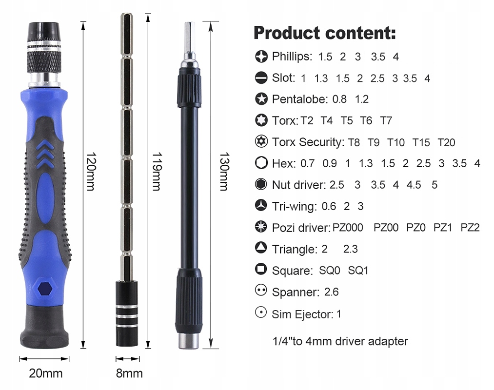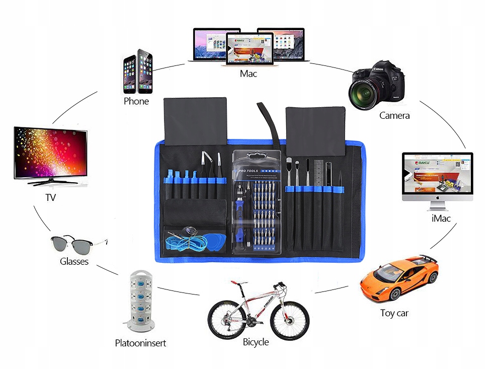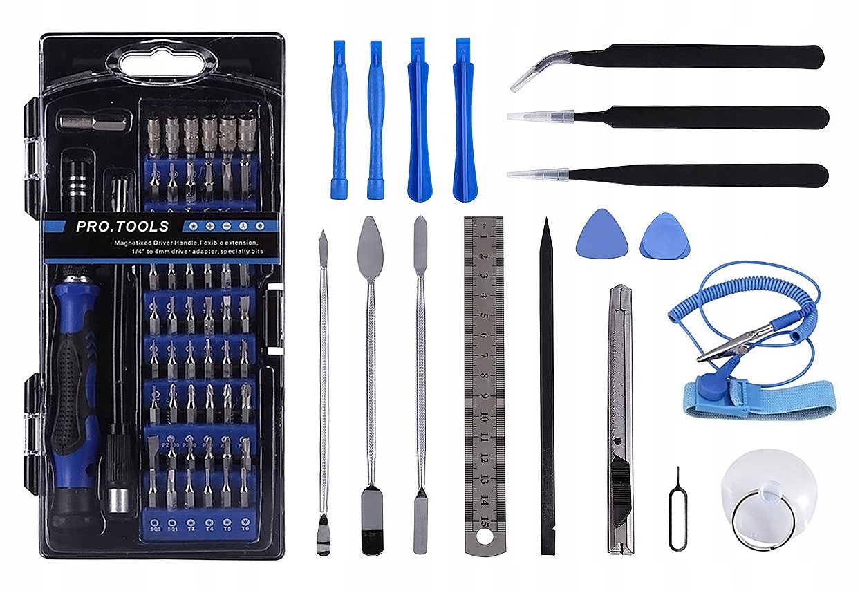 RT0161 to zestaw 80 precyzyjnych narzędzi, otwieraków i bitów z lekkim aluminiowym uchwytem przeznaczony do precyzyjnych napraw serwisowych telefonów i smartfonów oraz wszelkiej elektroniki konsumenckiej.