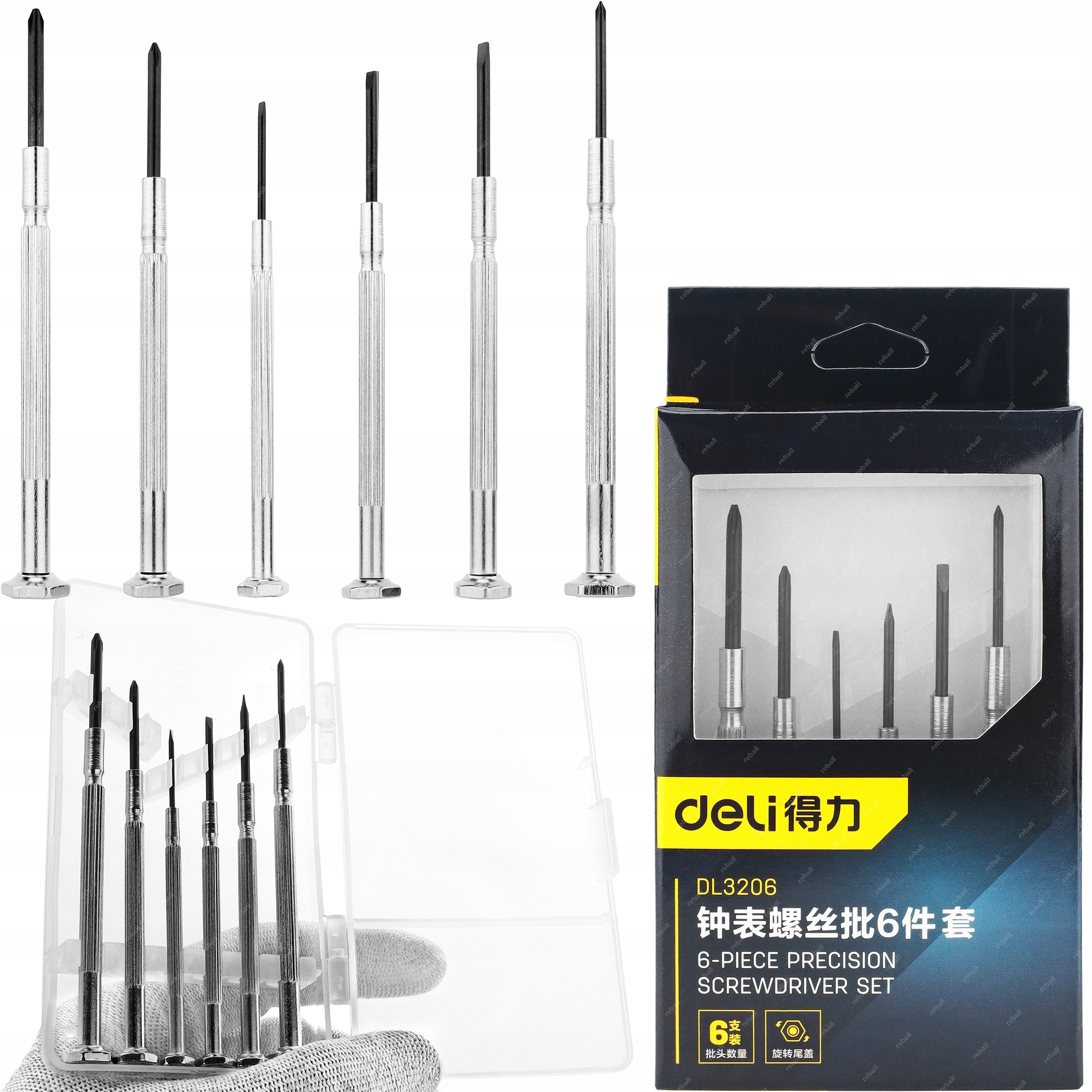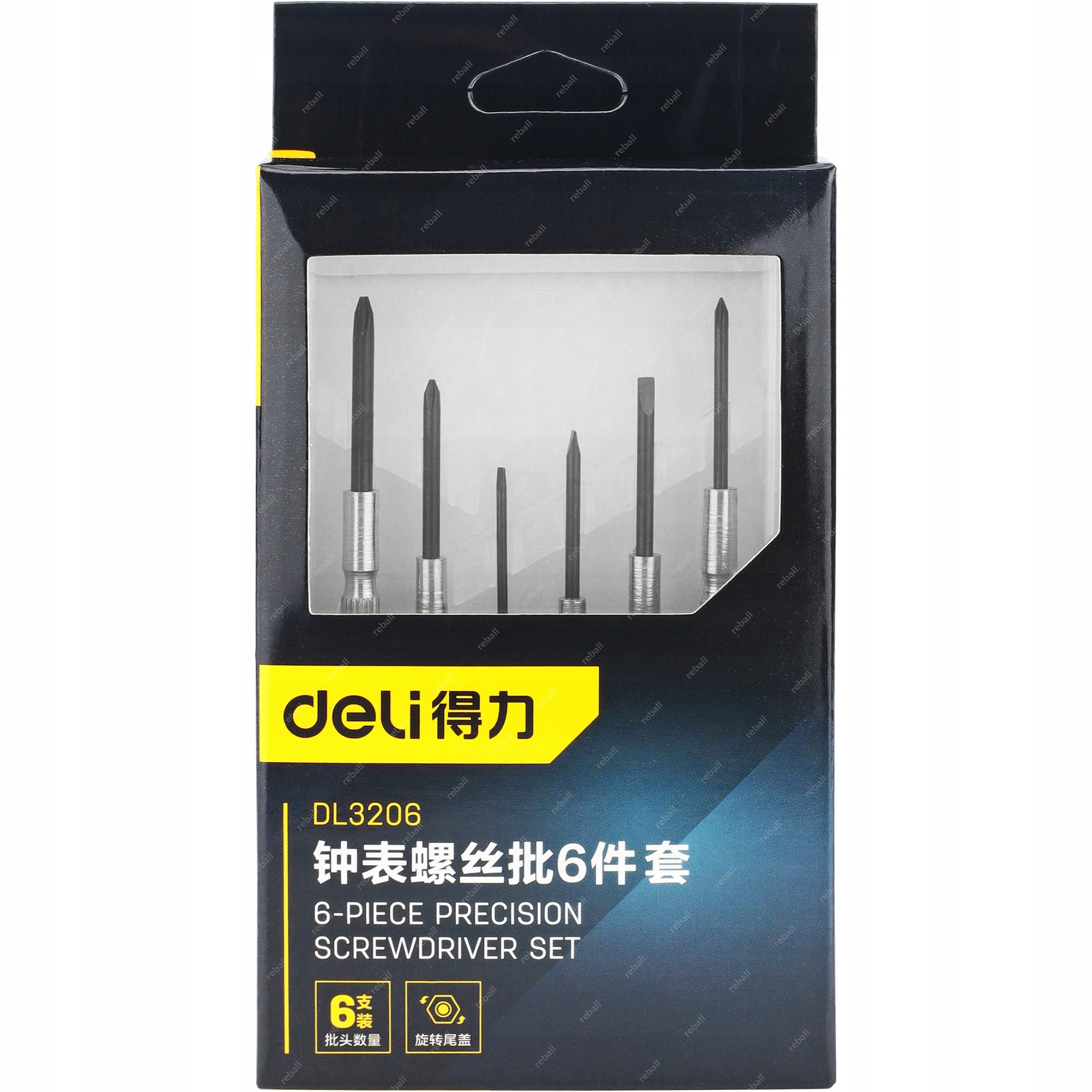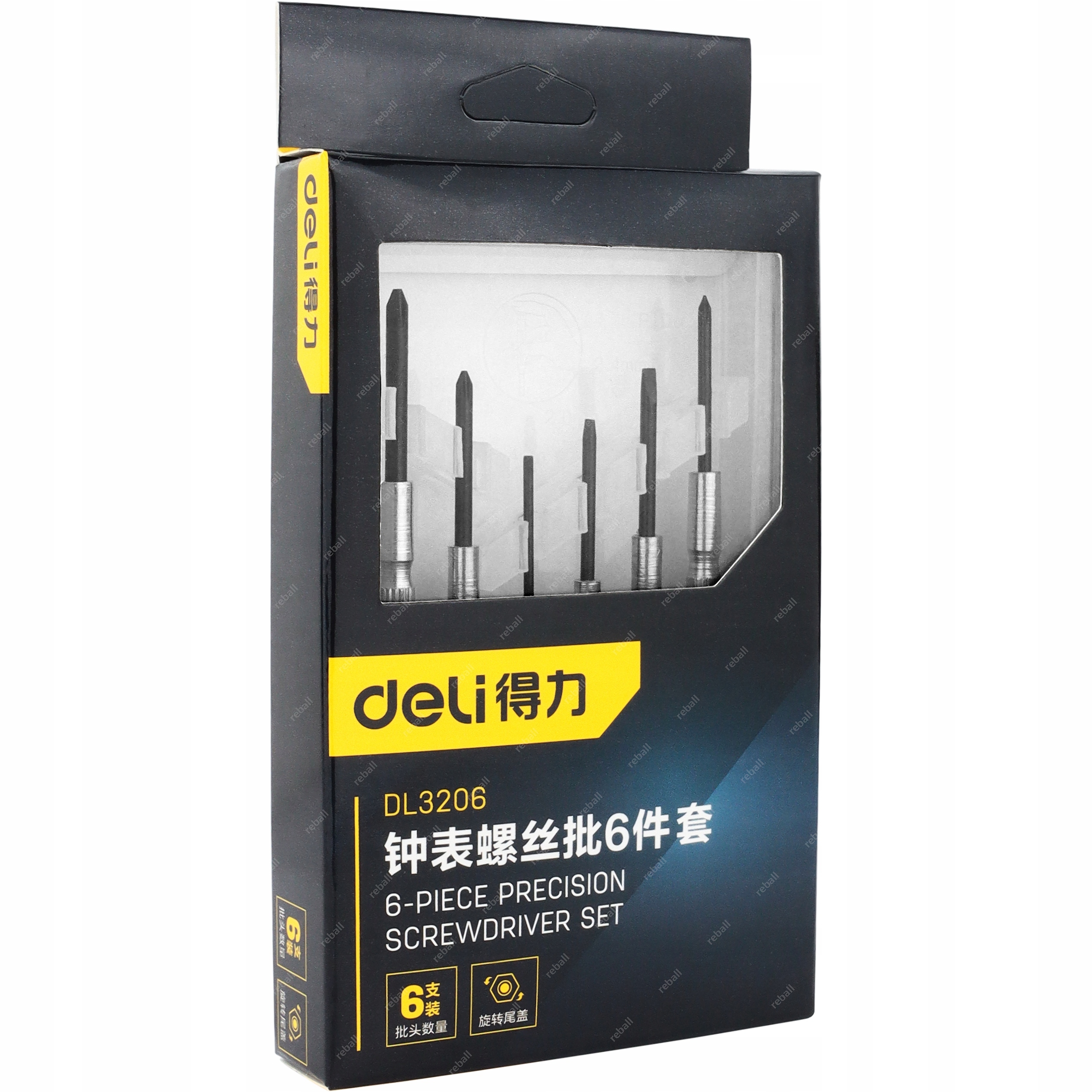 DELI DL3206 to zestaw 6 precyzyjnych wkrętaków z lekkim uchwytem przeznaczony do precyzyjnych napraw serwisowych telefonów, smartfonów oraz drobnej elektroniki.