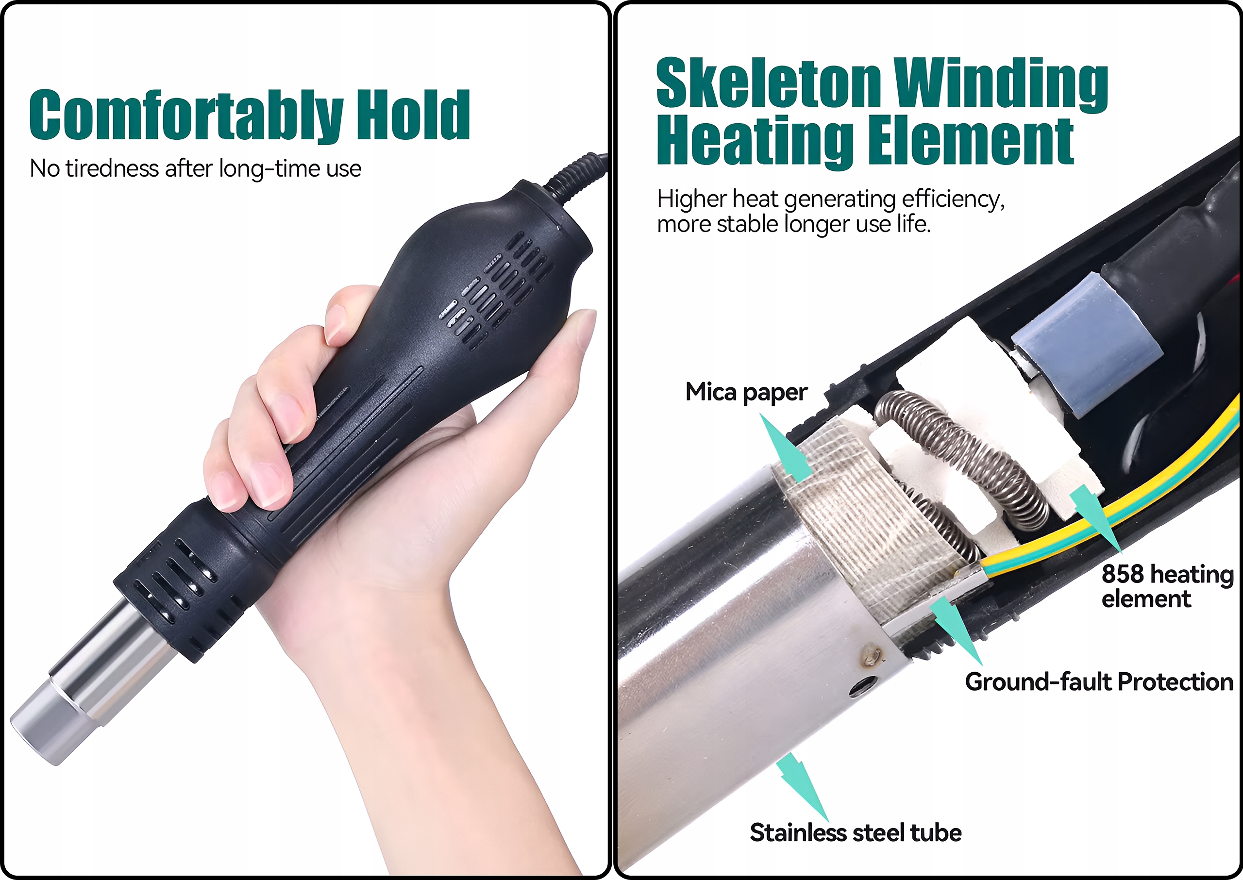 ✅ System turbiny wbudowanej w kolbę gwarantuje stały, wydajny przepływ gorącego powietrza, znacznie wyższy niż w tradycyjnych kompresorach, co umożliwia dokładne i trwałe lutowanie nawet najbardziej wymagających komponentów jak np złącza transformatorów czy spawanie zderzaków samochodowych.