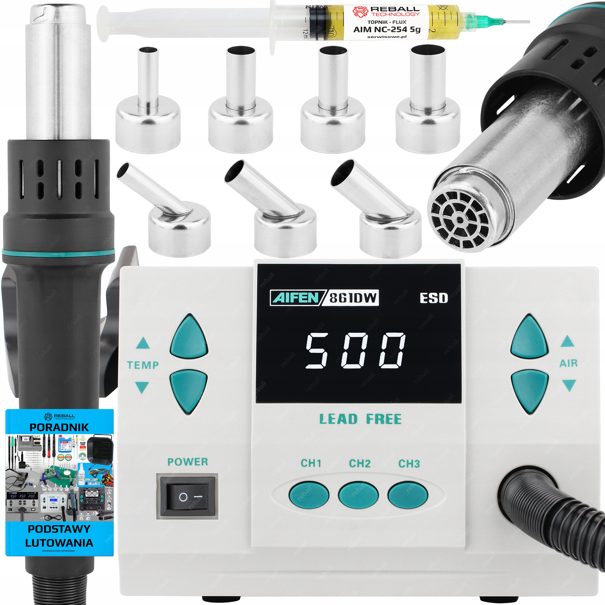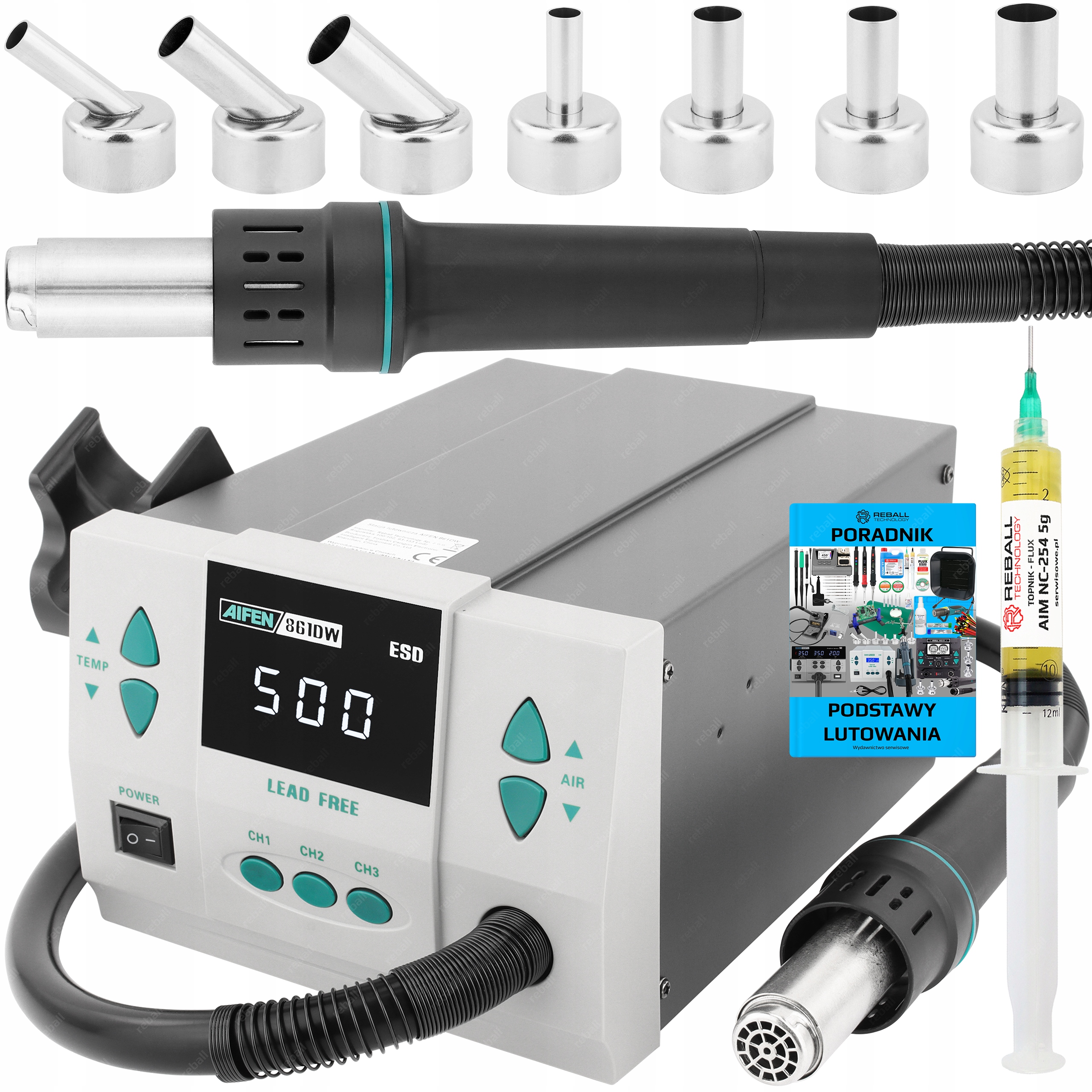 AIFEN 861DW o mocy 1000W ESD to profesjonalna stacja lutownicza HOTAIR z nadmuchem gorącego powietrza i przepływie powietrza aż 1-120l/min.