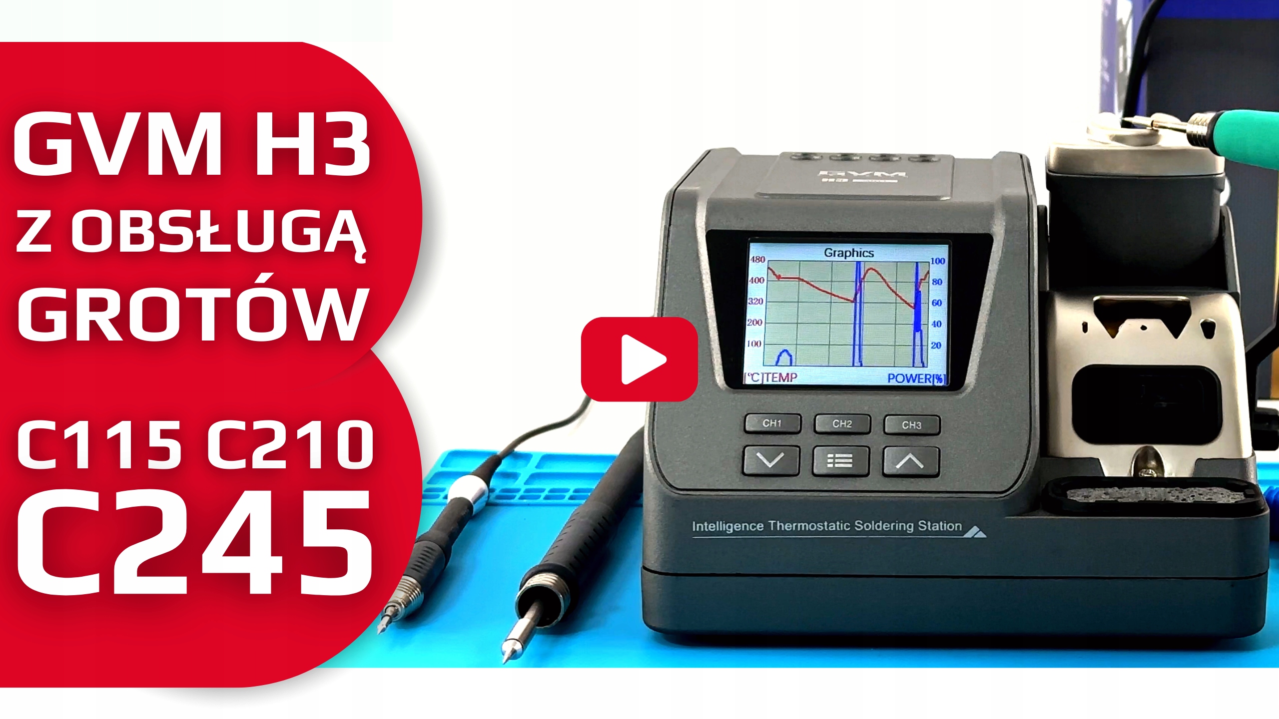 Rewelacyjna stacja lutownicza GVM H3 3w1 obsługująca aż trzy rodzaje kolb na trzy typy grotów przeznaczona jest do prac lutowniczych zarówno w zakresie elektroniki jak i mikroelektroniki.