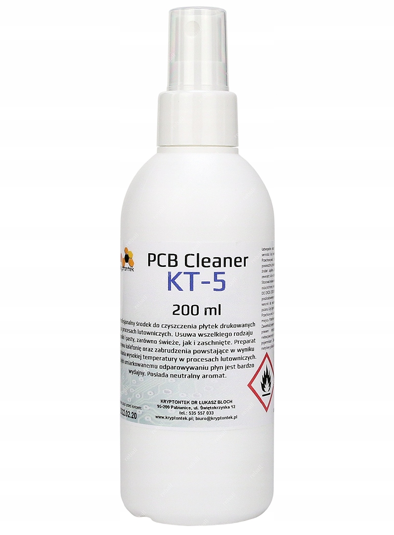 Do czyszczenia pozostałości można używać płynów typu izopropanol oraz płynów dedykowanych jak KT-5 i KT-6.