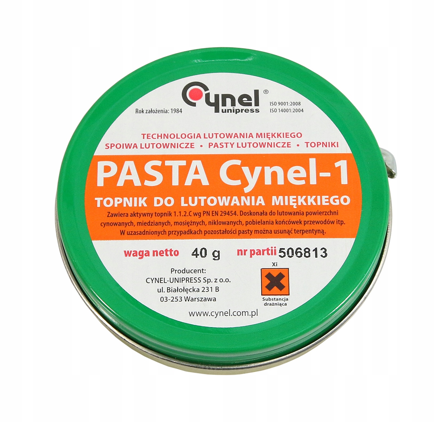 Pasta Cynel-1 to średnio aktywna pasta na bazie kalafonii z aktywatorami organicznymi.