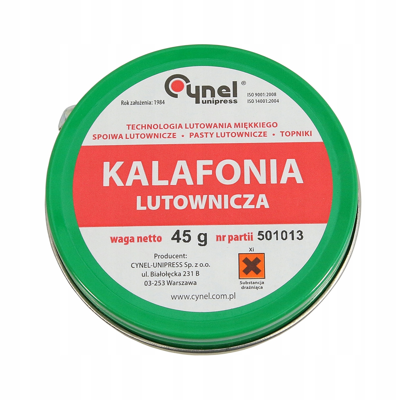 Kalafonia lutownicza to podstawowy topnik używany w elektronice. Wyprodukowana z żywicy sosnowej.