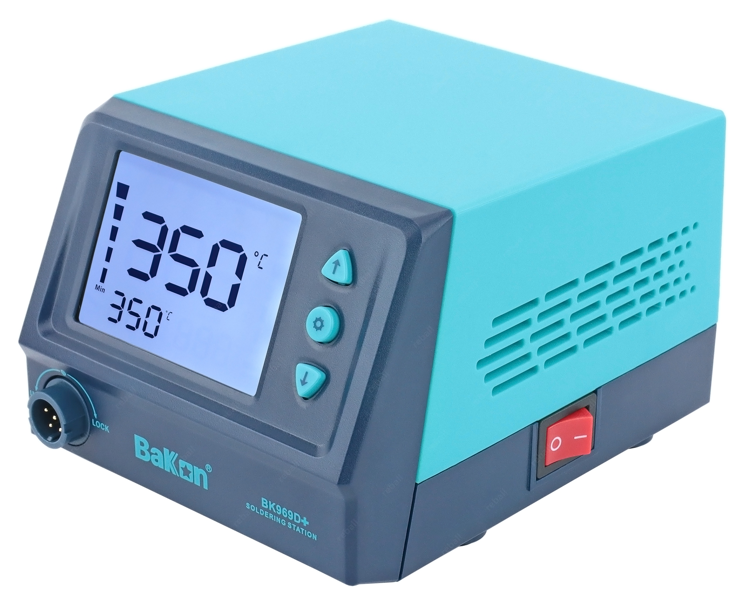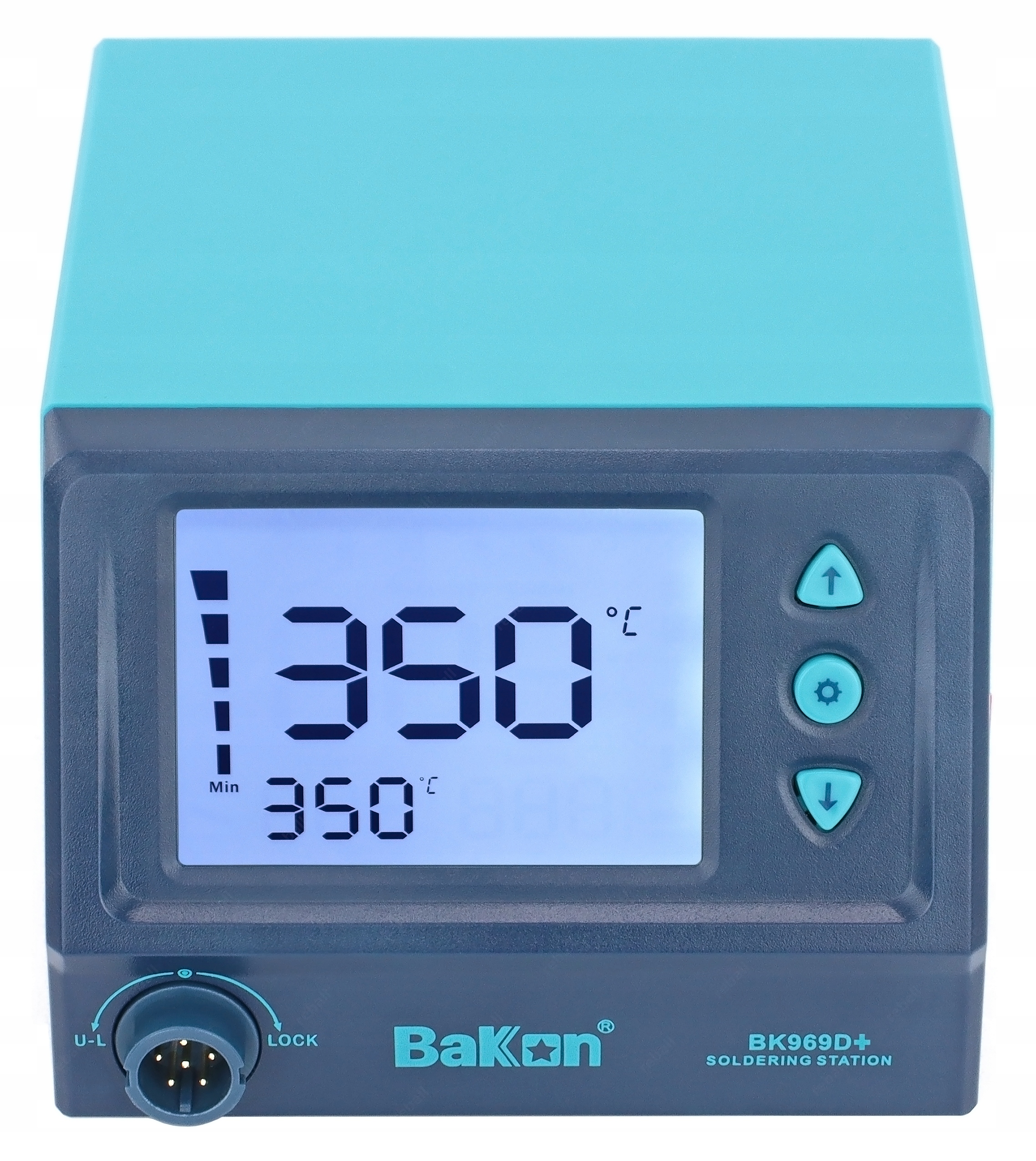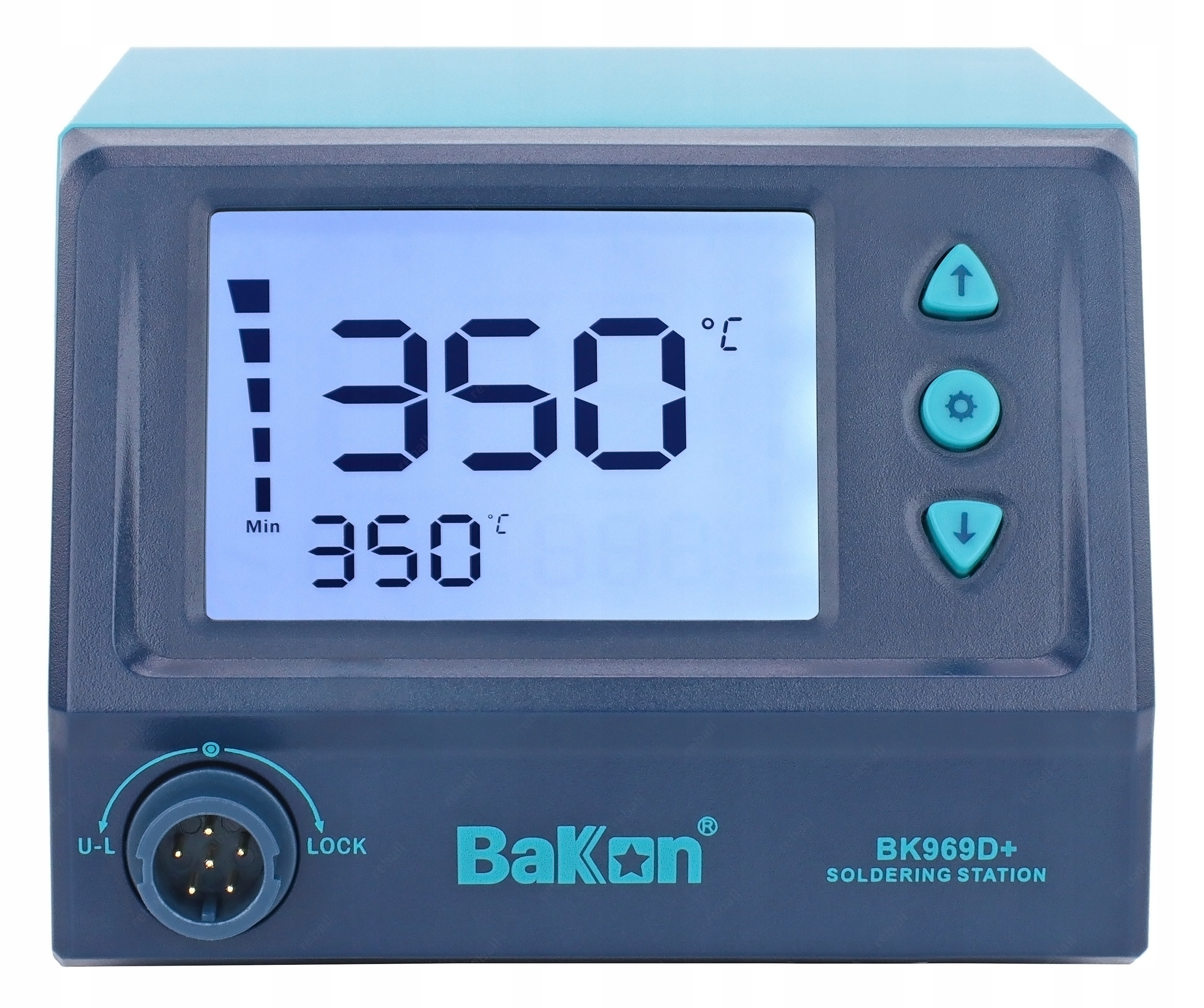 Bakon BK969D+ 75W to nowoczesna stacja lutownicza z płynną regulacją temperatury w zakresie od 180°C do 480°C oraz stabilizacją temperatury a co ważne dużym, cyfrowym i czytelnym wyświetlaczem LCD.