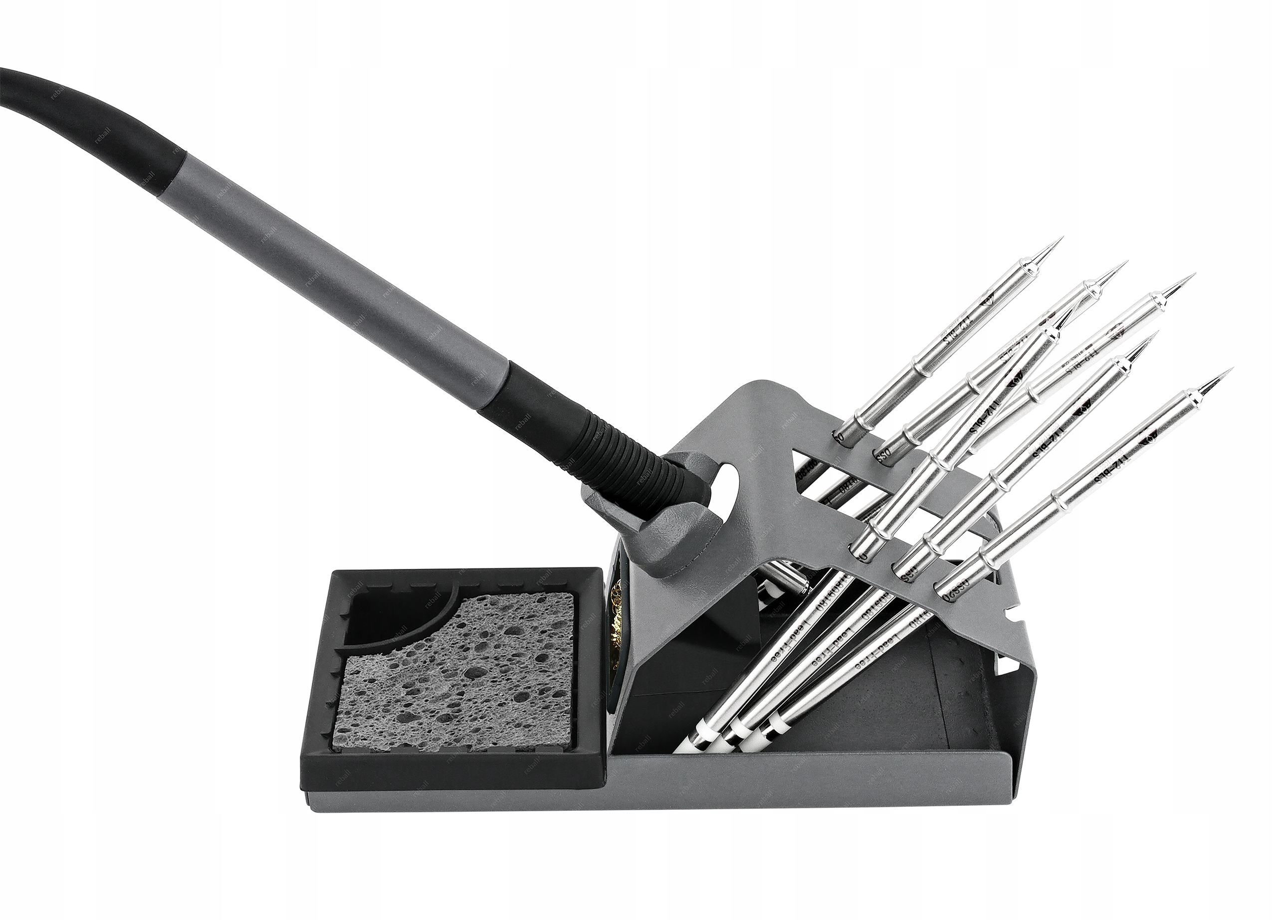 Stacja została wyposażona w kolbę lutownicza obsługującą groty typu T12 nadającą sie do pracy w zakresie elektroniki jak i mikroelektroniki.